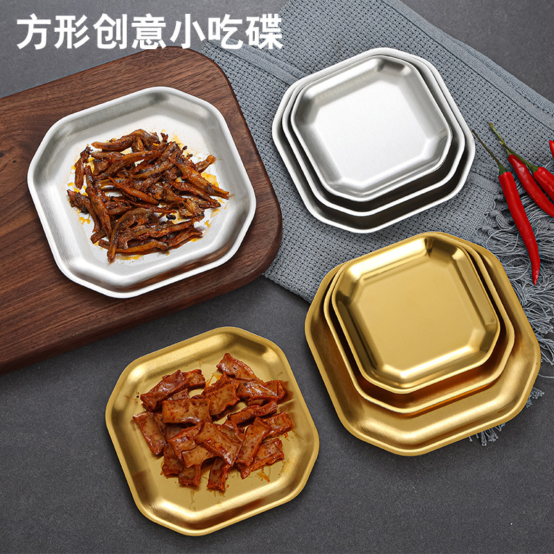 304 스테인레스 스틸 한국식 플레이트 사각 스낵 플레이트 크리에이티브 스낵 플레이트 피클 플레이트 바베큐 플레이트 트레이 골든 플레이트