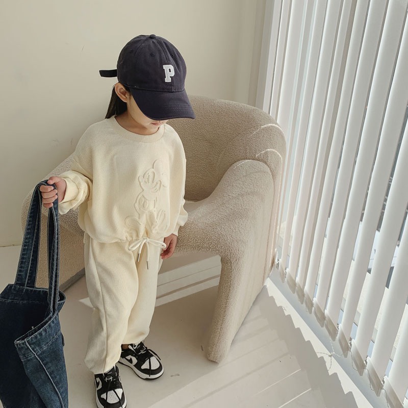 2025 봄, 가을 신상 아동복, 남아 및 여아용 오목 및 볼록 프린트 슈트, 베이비 스웨트셔츠 투피스 세트, 트렌디스토어 가기