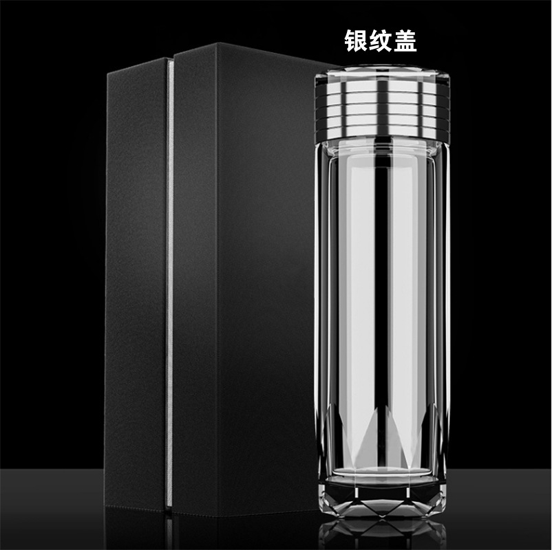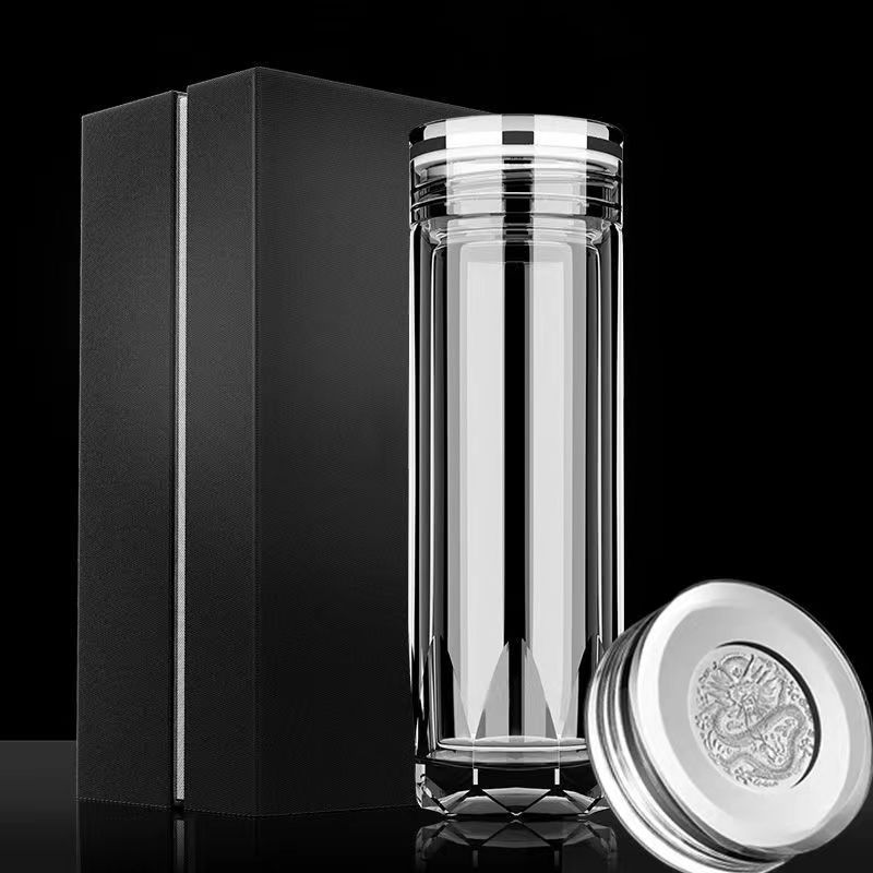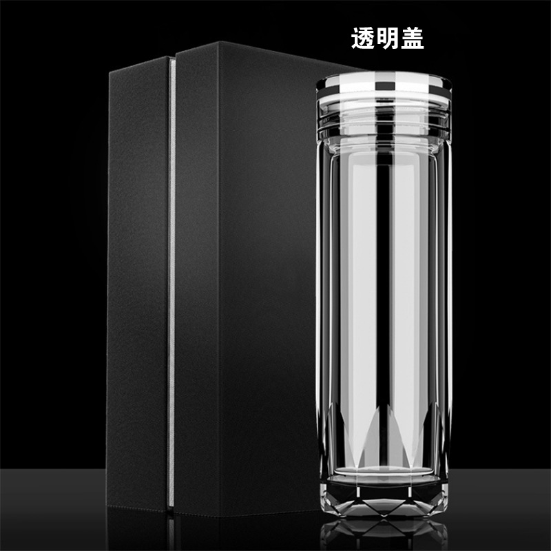 이중층 유리 패딩 단열 찻잔 휴대용 고급 로고 인쇄 남성용 선물 크리스탈 컵 도매