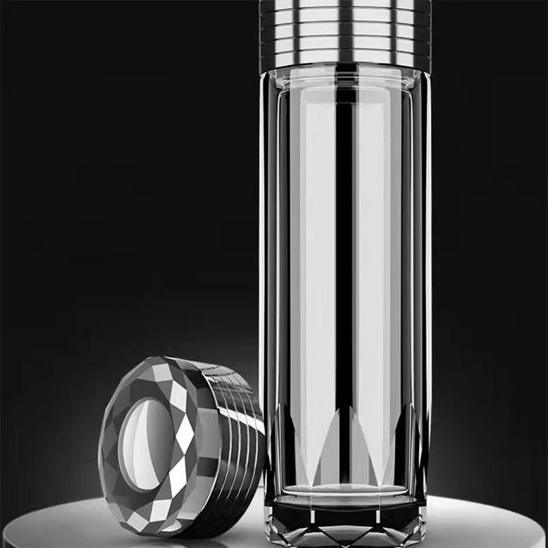 이중층 유리 패딩 단열 찻잔 휴대용 고급 로고 인쇄 남성용 선물 크리스탈 컵 도매스토어 가기