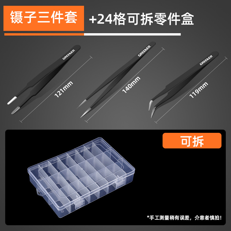 • 핀셋 3 피스 세트 + 24 그리드 부품 상자
