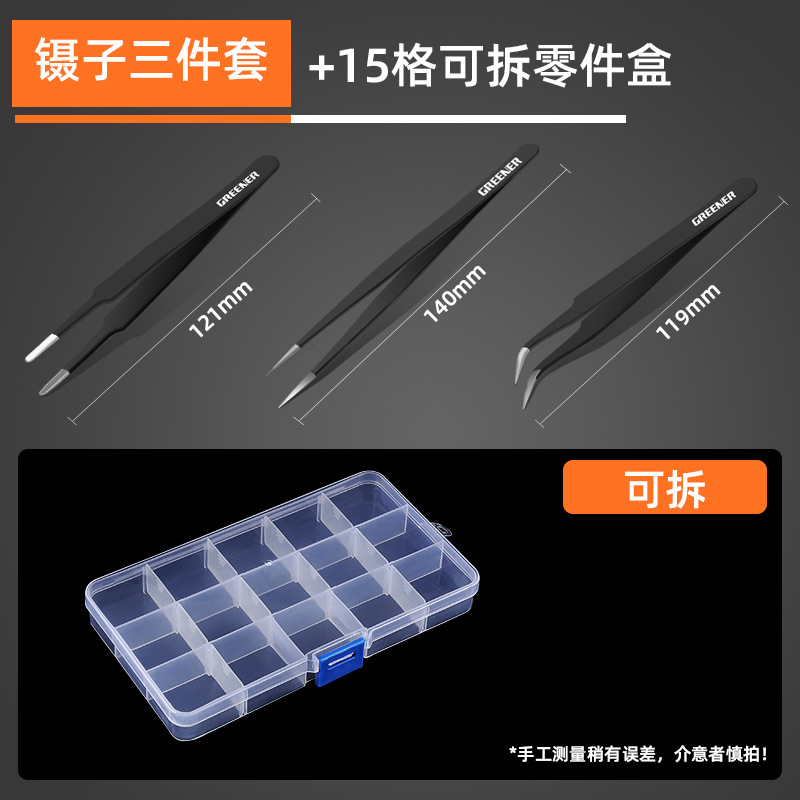 • 핀셋 세트 3 개 + 15 부품 상자