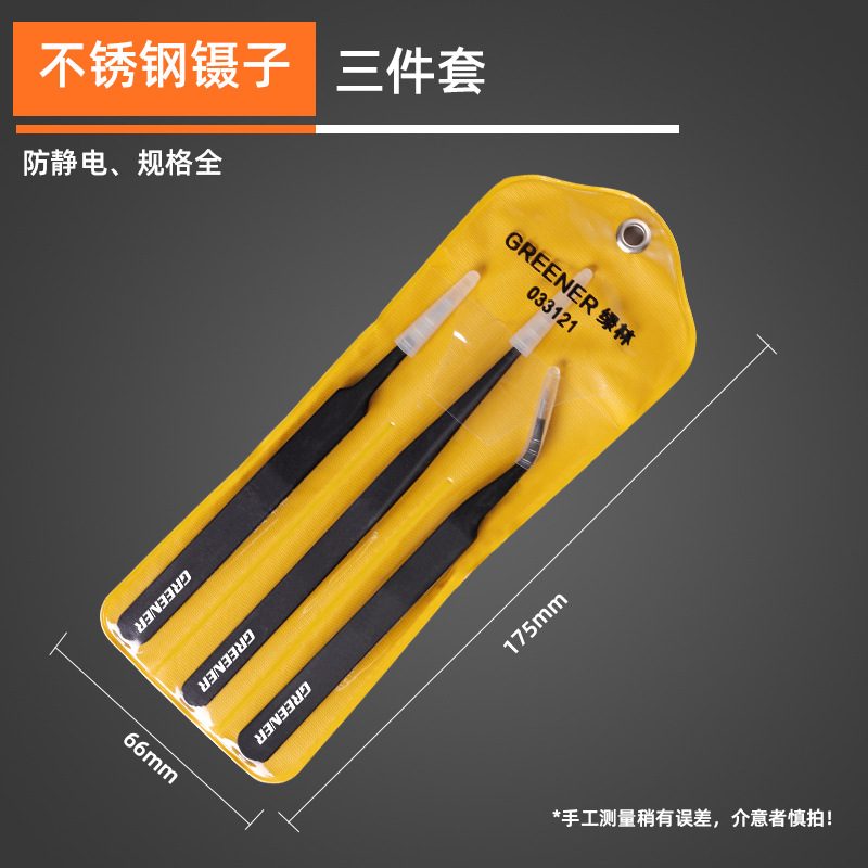초록의 숲 정밀 스테인리스 핀셋 3 피스 세트 팔꿈치 플랫 헤드 얇은 뾰족한 헤드 정전기 방지 용접 디지털 수리스토어 가기
