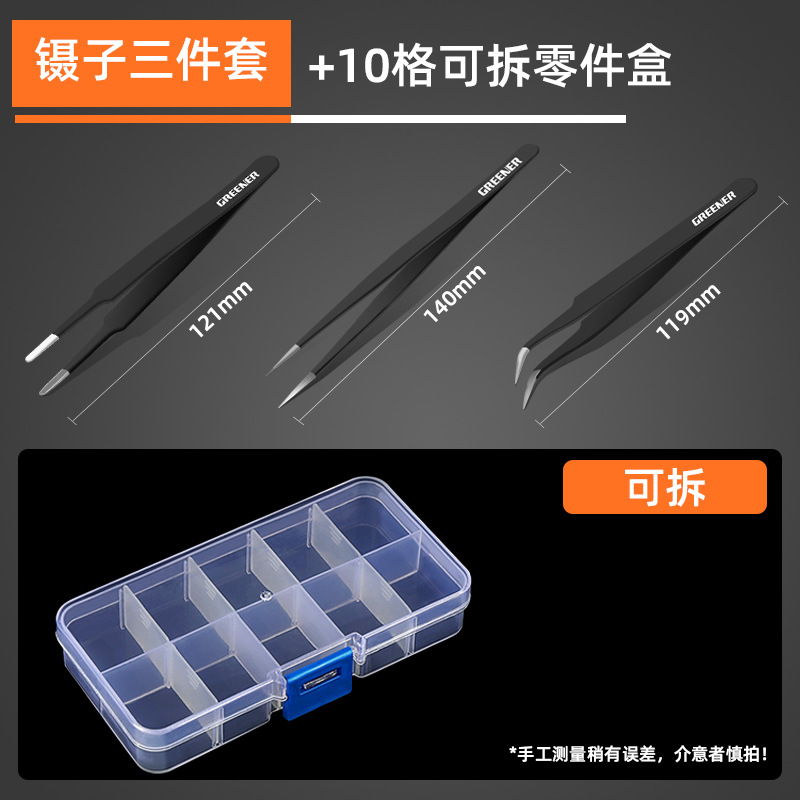 • 핀셋 세트 3 개 + 10 부품 상자