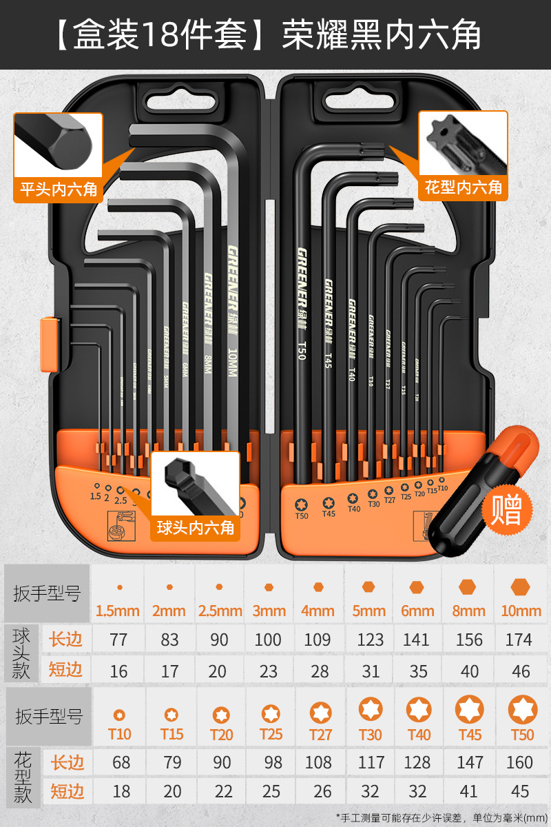 녹색 숲 알렌 렌치 세트 6 각 드라이버 내부 6 꽃 연장 자동 조합 육각형