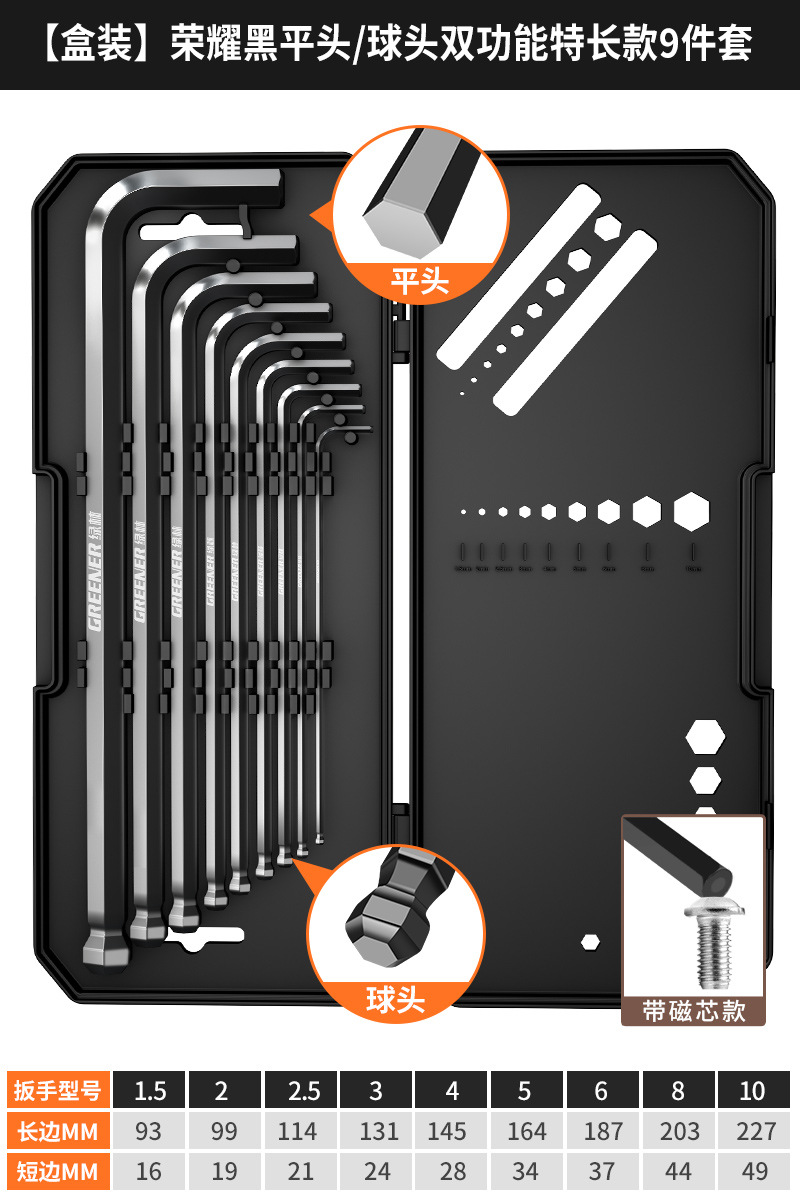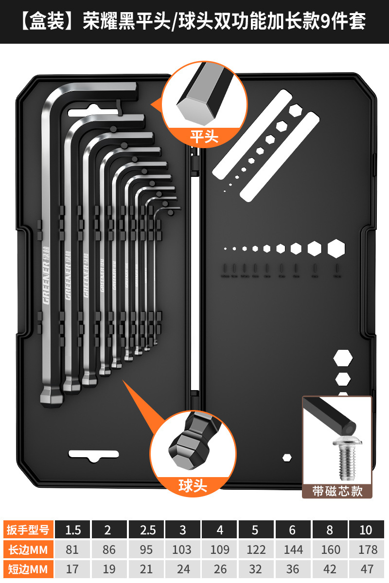 • [마그네틱 코어 영광 블랙 박스] 확장 볼 헤드/플랫 헤드 듀얼 기능 듀얼 사용 9 피스 세트