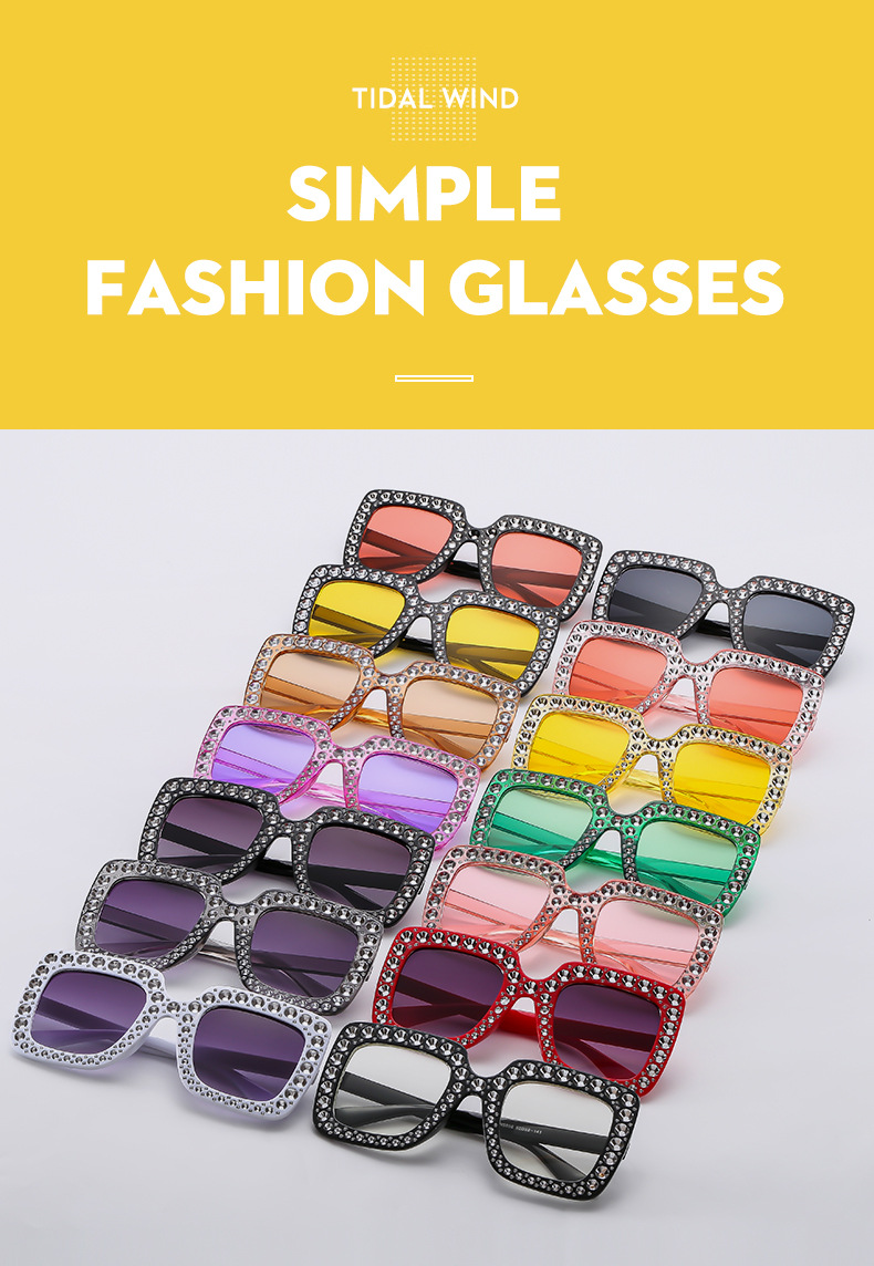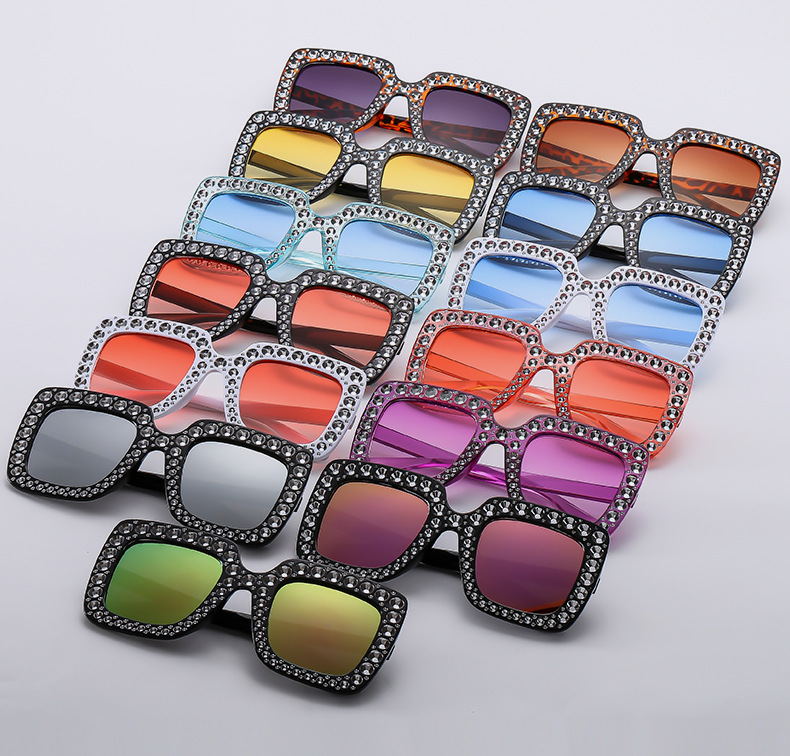 새로운 멀티 컬러 박스 다이아몬드 박힌 디스코 선글라스 크로스 보더 유럽과 미국 패션 선글라스 레트로 트렌디 디스코 안경스토어 가기