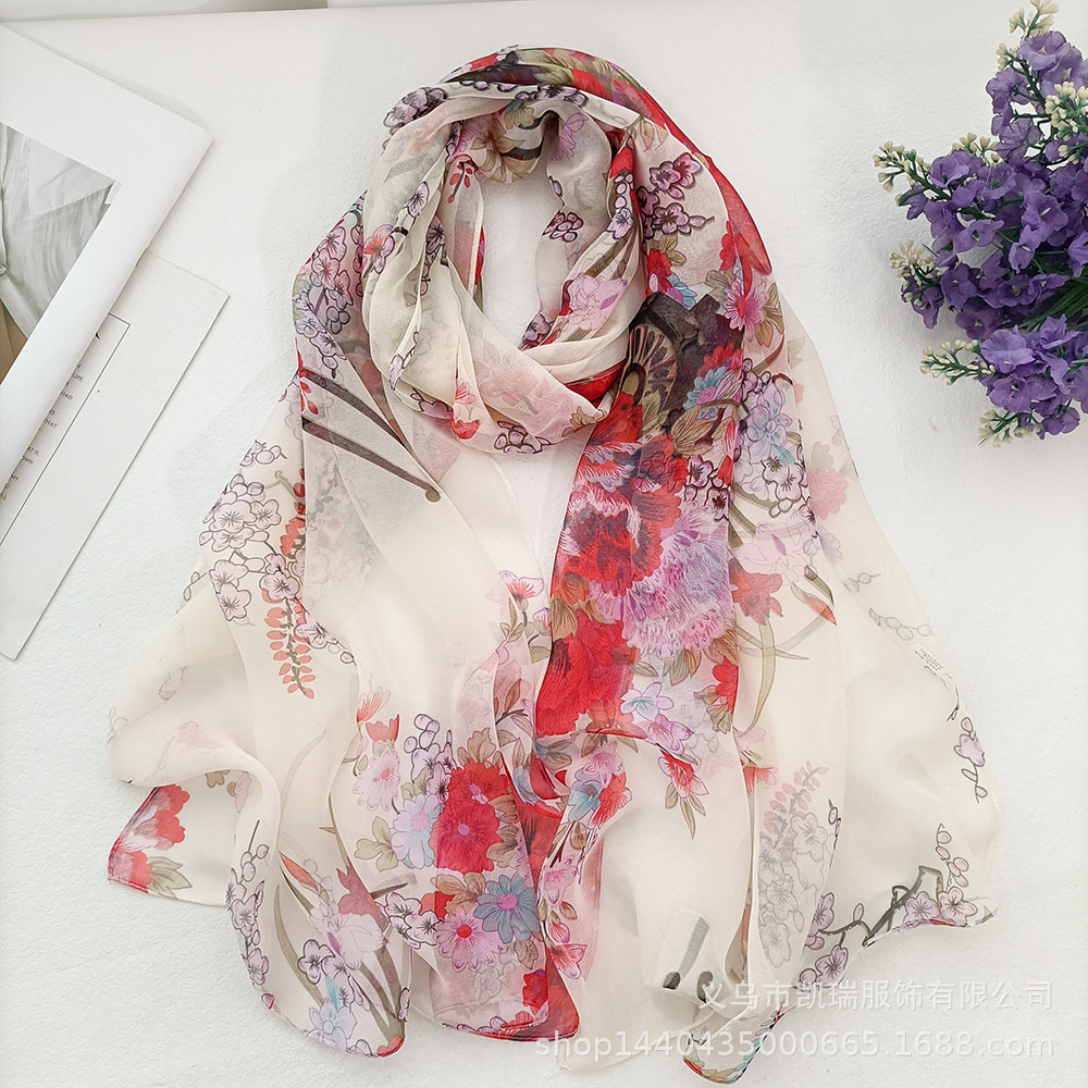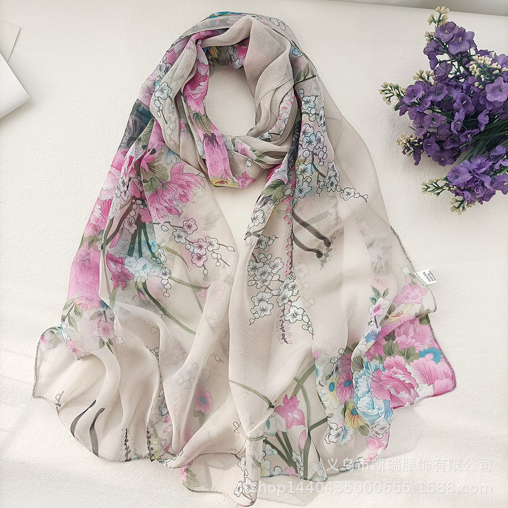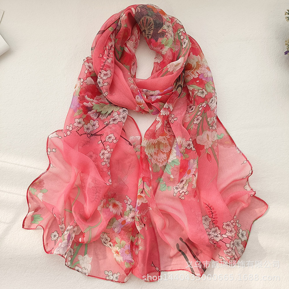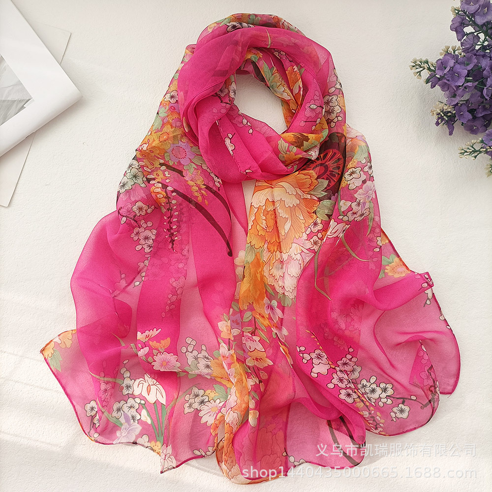 여름 자외선 차단제 스카프 해변 비치 스카프 매화 꽃 모란 부드러운 긴 여성용 스카프 경량 Qiaoqi 원사 스카프 스카프스토어 가기
