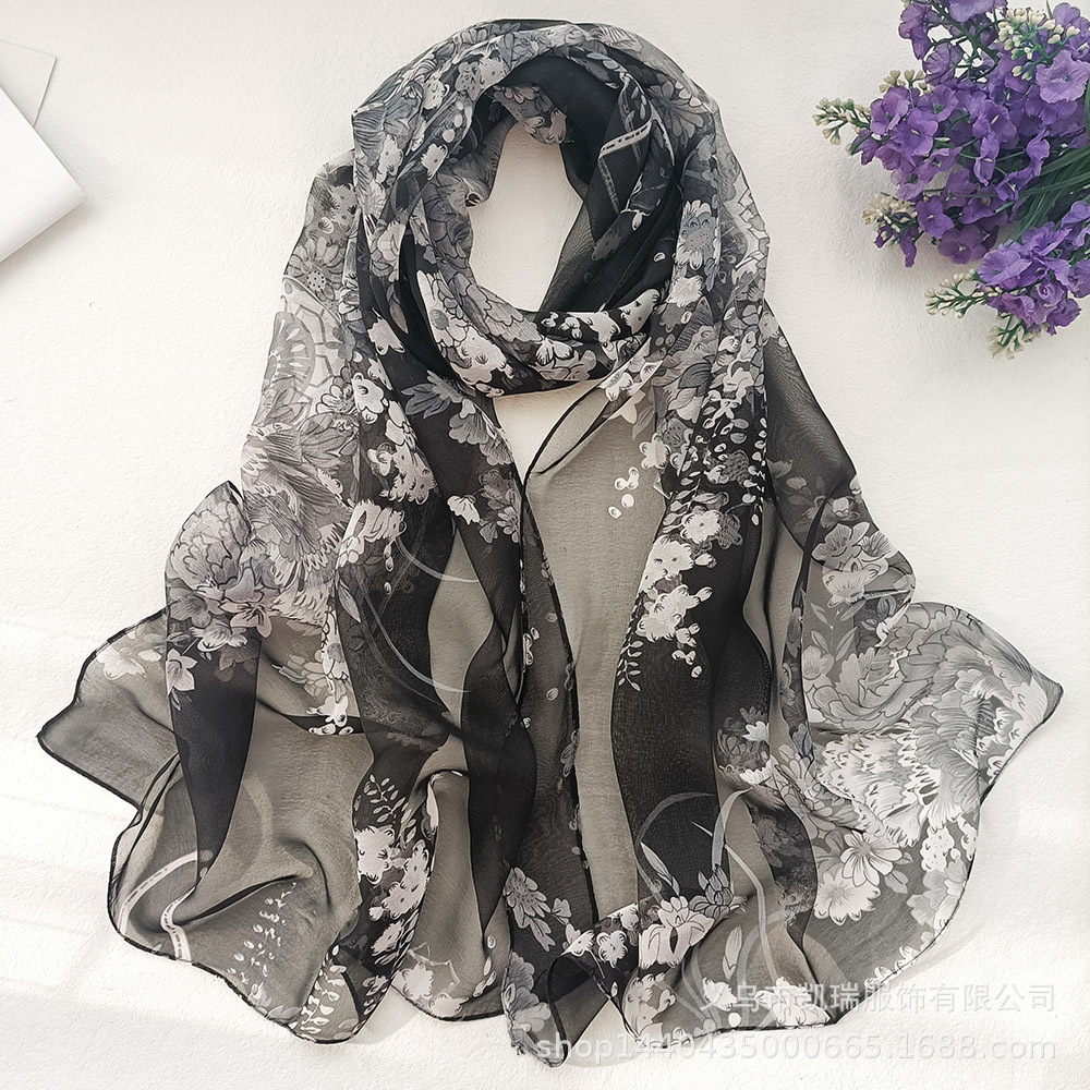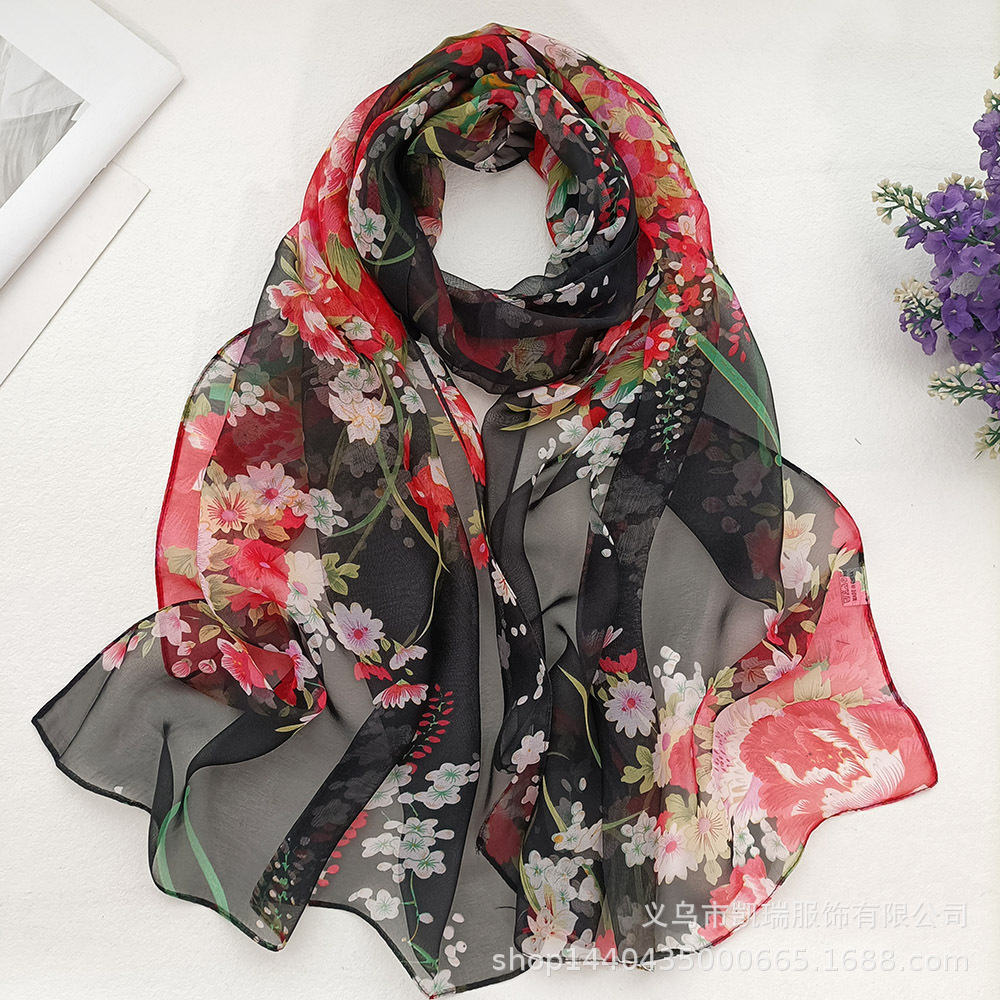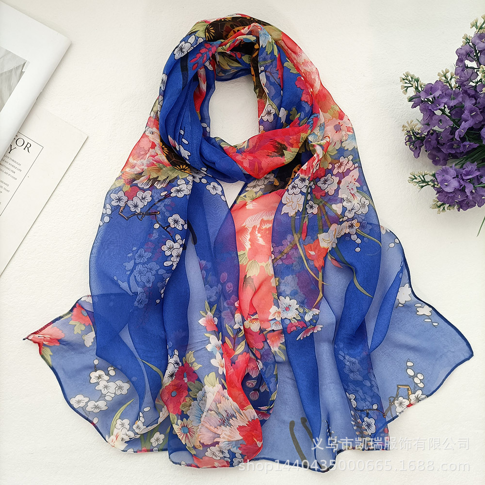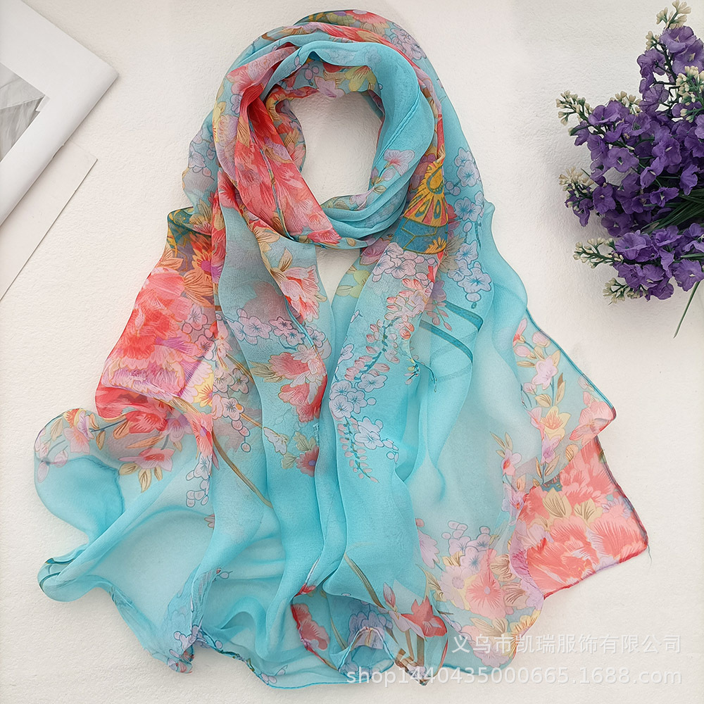 여름 자외선 차단제 스카프 해변 비치 스카프 매화 꽃 모란 부드러운 긴 여성용 스카프 경량 Qiaoqi 원사 스카프 스카프스토어 가기