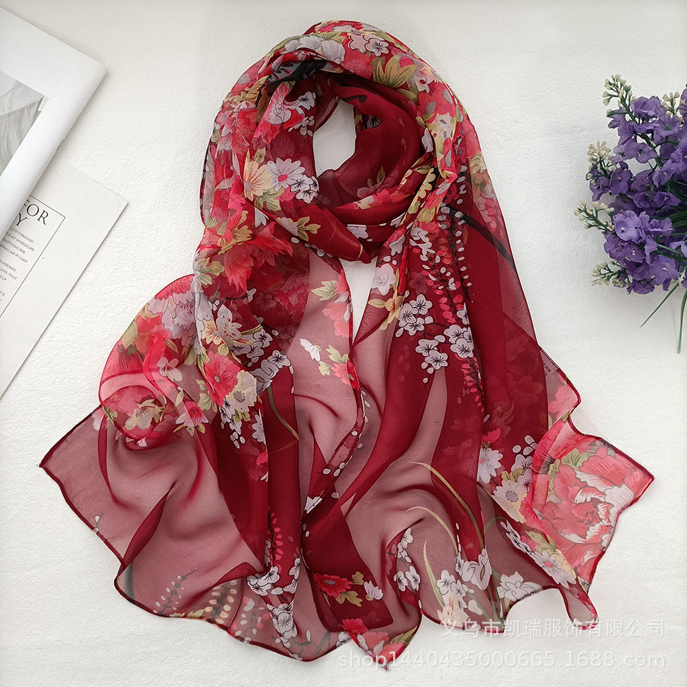여름 자외선 차단제 스카프 해변 비치 스카프 매화 꽃 모란 부드러운 긴 여성용 스카프 경량 Qiaoqi 원사 스카프 스카프