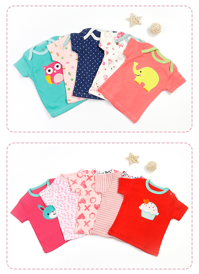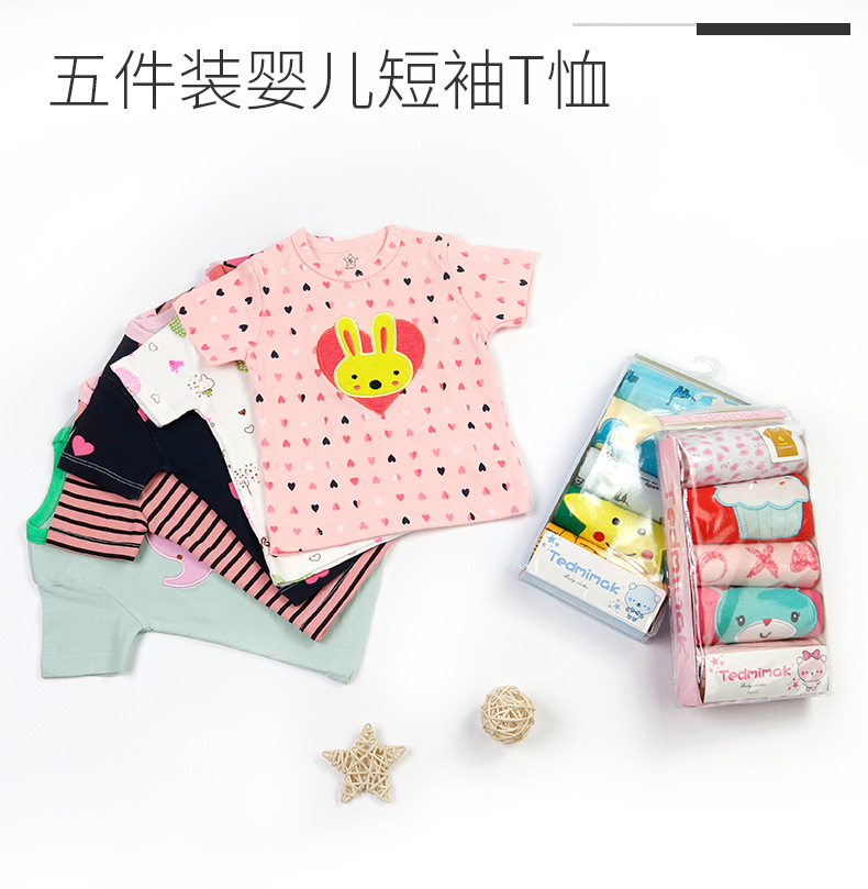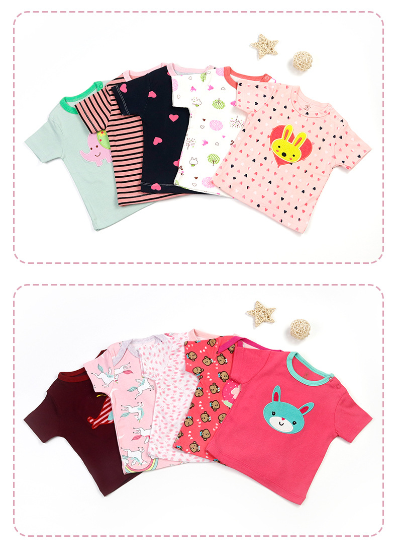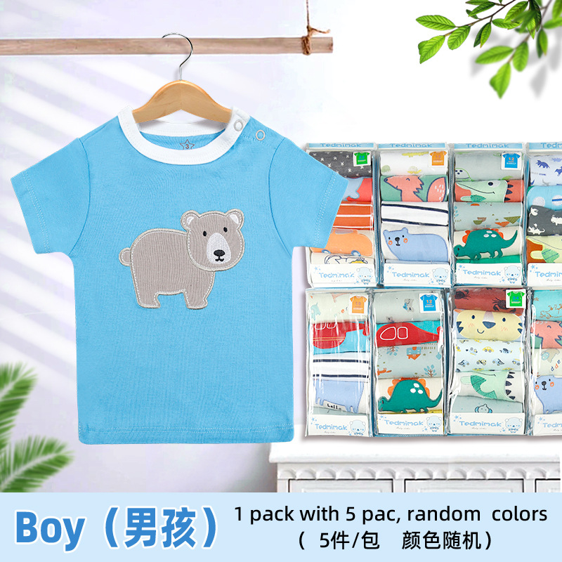 대외 무역 아동 의류 도매 2024 새로운 유럽과 미국 면화 유아 반팔 티셔츠 아기 옷 소년과 소녀 5 피스 세트스토어 가기