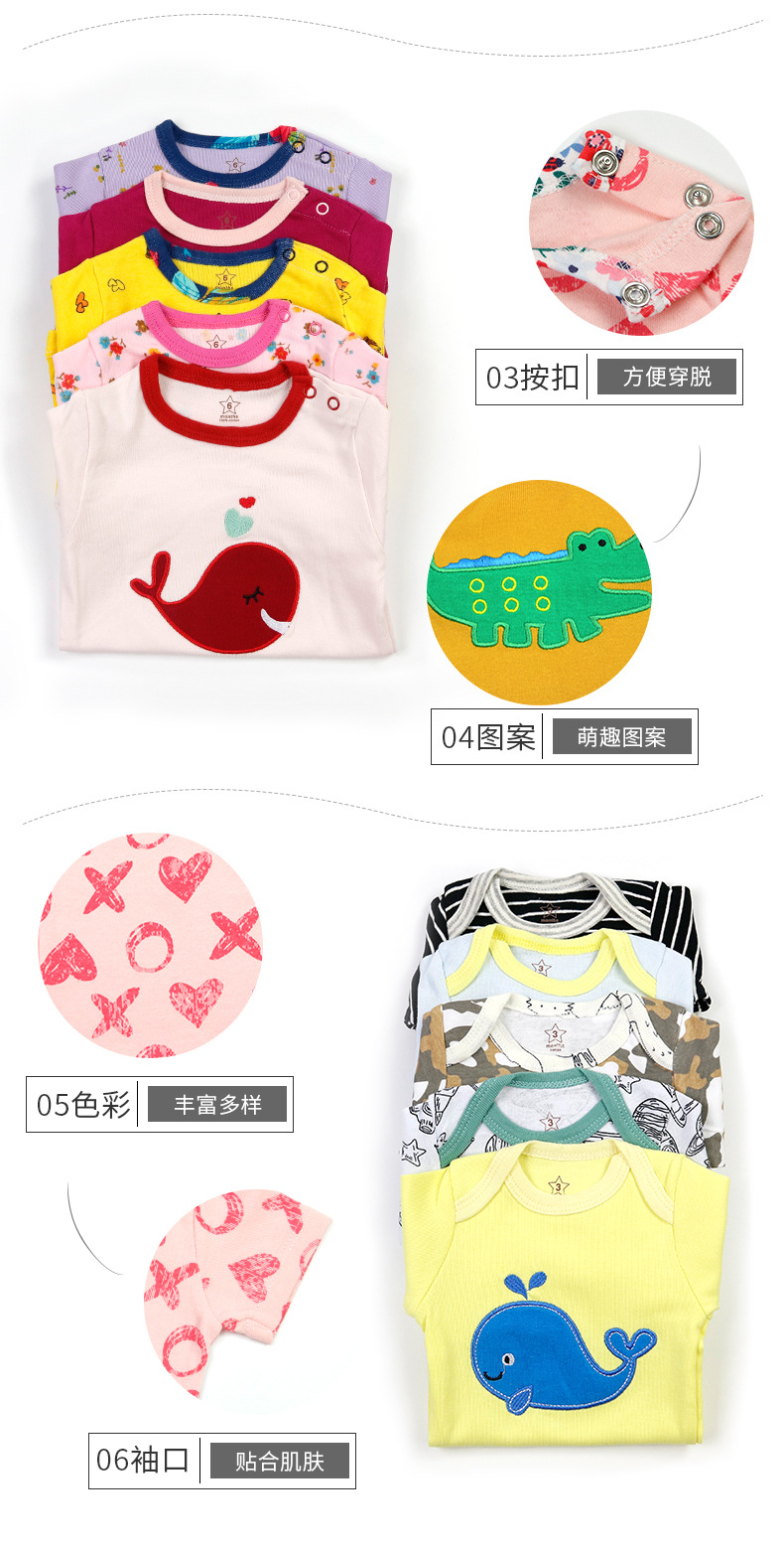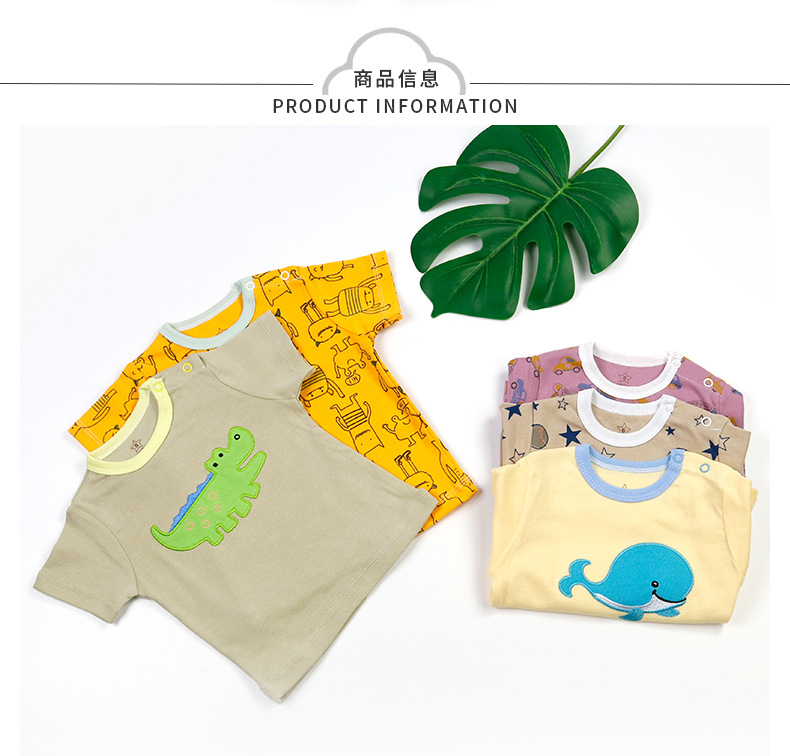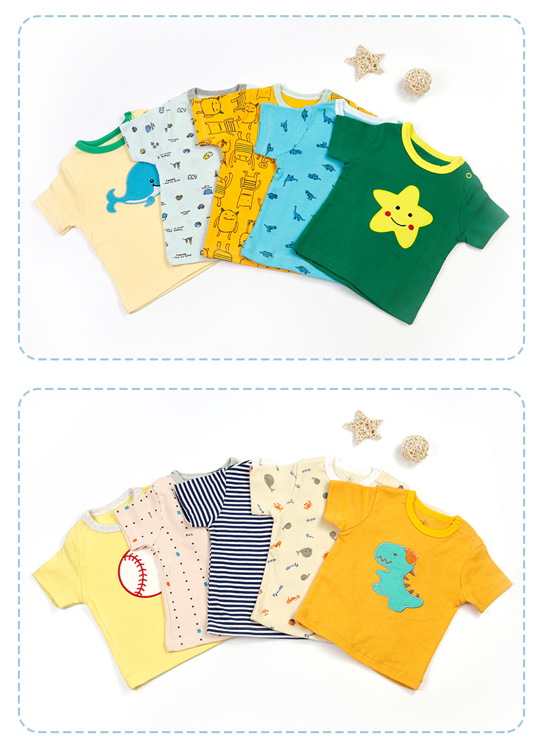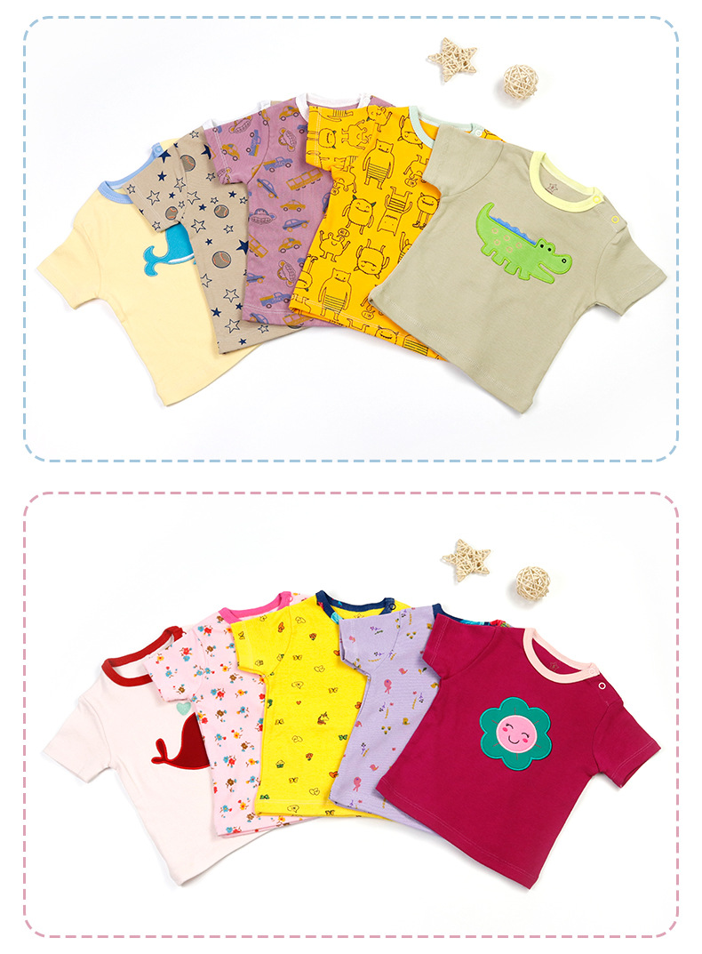 대외 무역 아동 의류 도매 2024 새로운 유럽과 미국 면화 유아 반팔 티셔츠 아기 옷 소년과 소녀 5 피스 세트스토어 가기