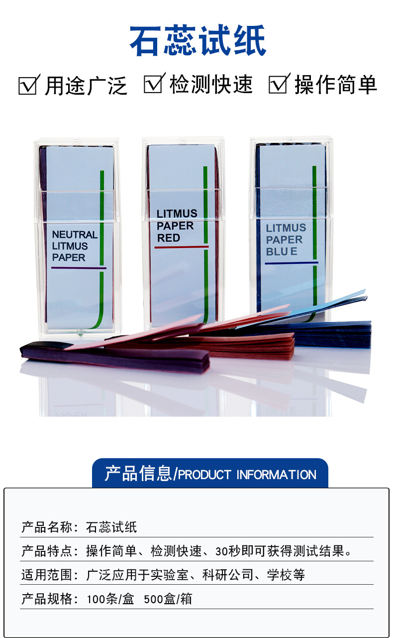 케딩 수출용 리트머스 시험지 중성 보라색, 빨간색, 파란색 산성 및 알칼리성 측정용 100개/박스 실험용