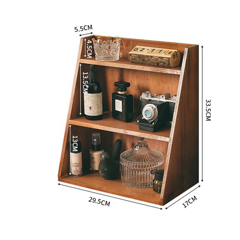 일본식 원목 복고풍 수납 선반, 데스크탑 3단 수납 선반, 화장품 수납 캐비닛, 다층 걸이식 수납함