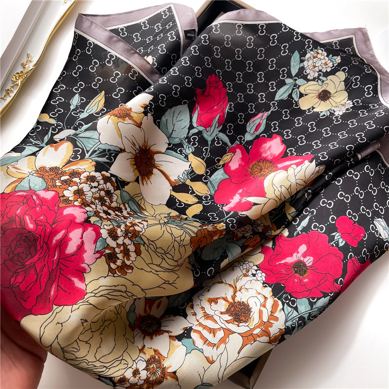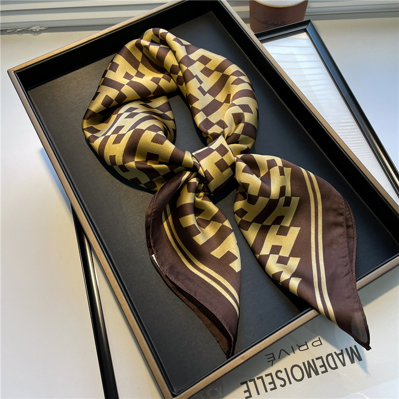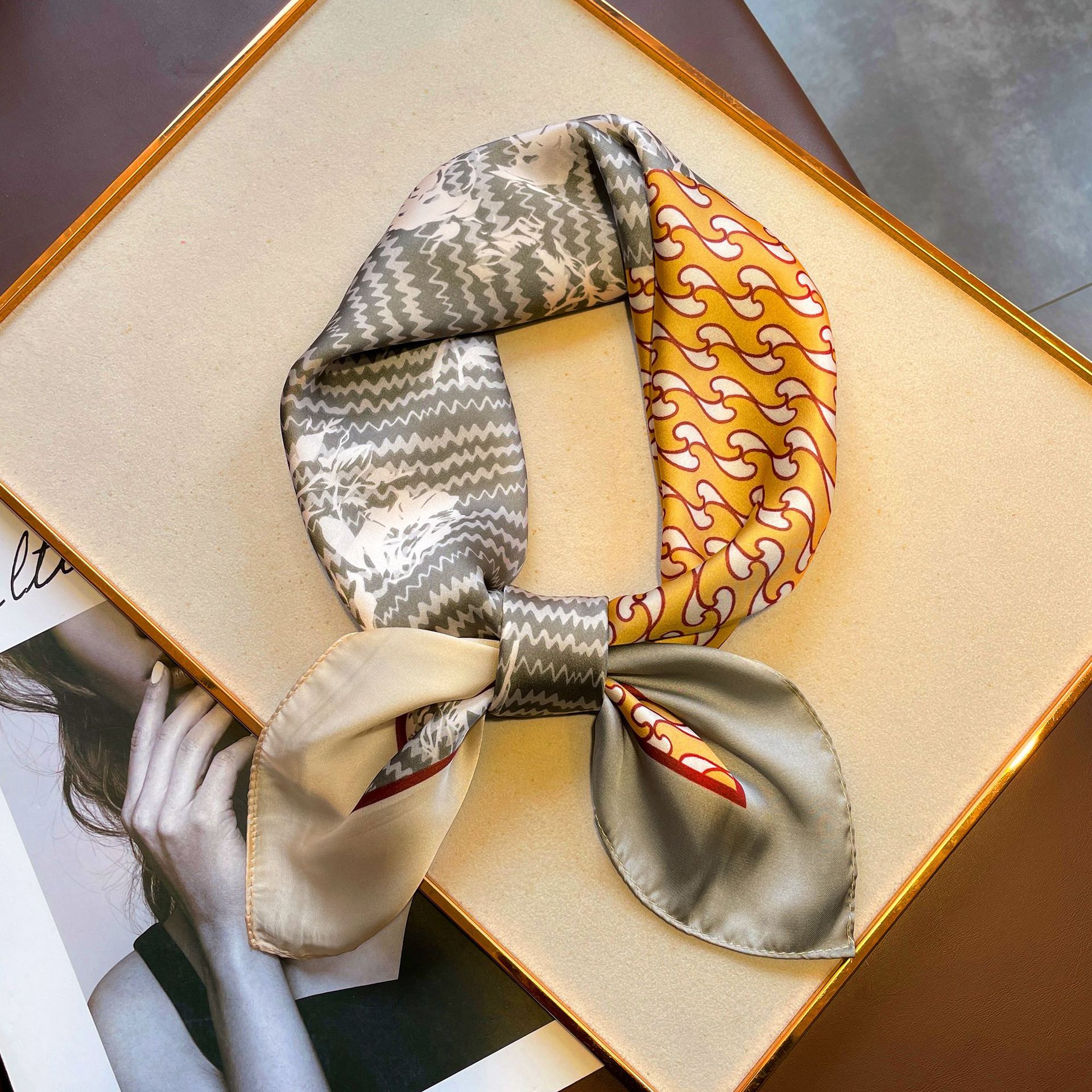 모조 실크 스카프 70cm 작은 사각 스카프 모든 매치 실크 스카프 장식 스카프 새로운 스타일 올드 플라워 레터 유럽과 미국 실크 스카프
