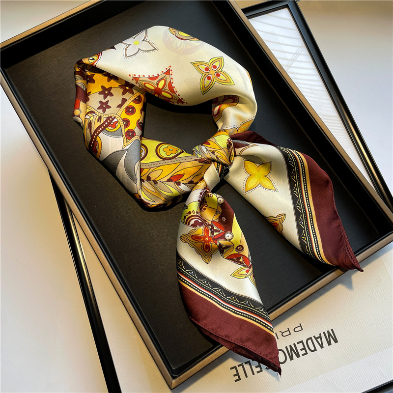 모조 실크 스카프 70cm 작은 사각 스카프 모든 매치 실크 스카프 장식 스카프 새로운 스타일 올드 플라워 레터 유럽과 미국 실크 스카프스토어 가기