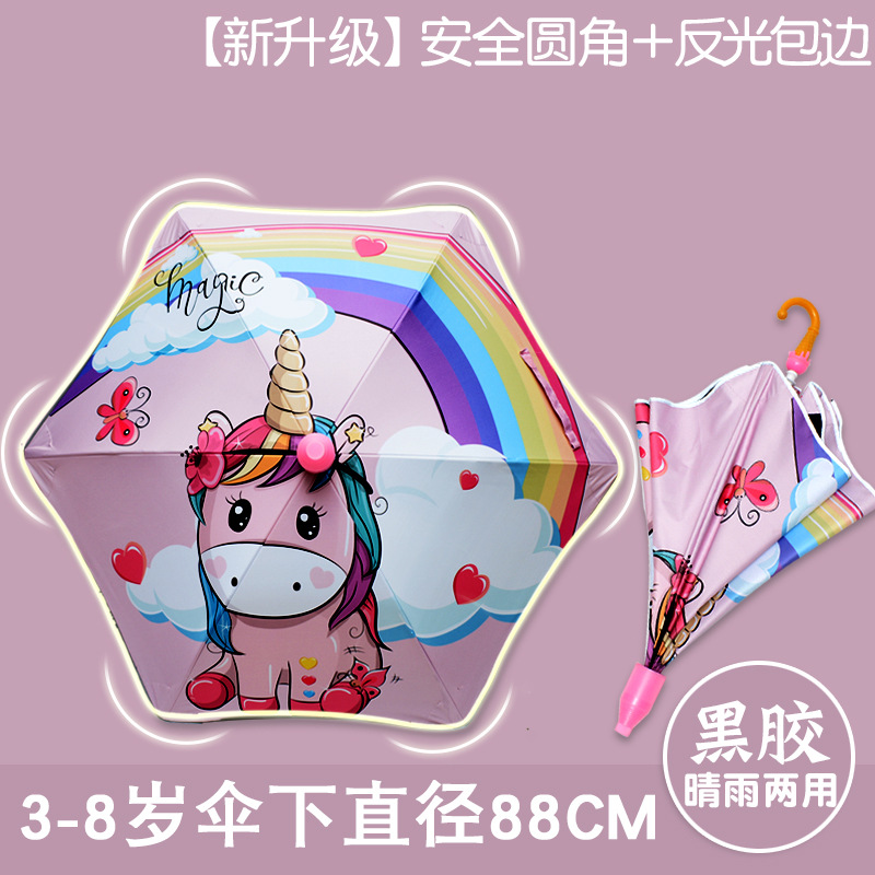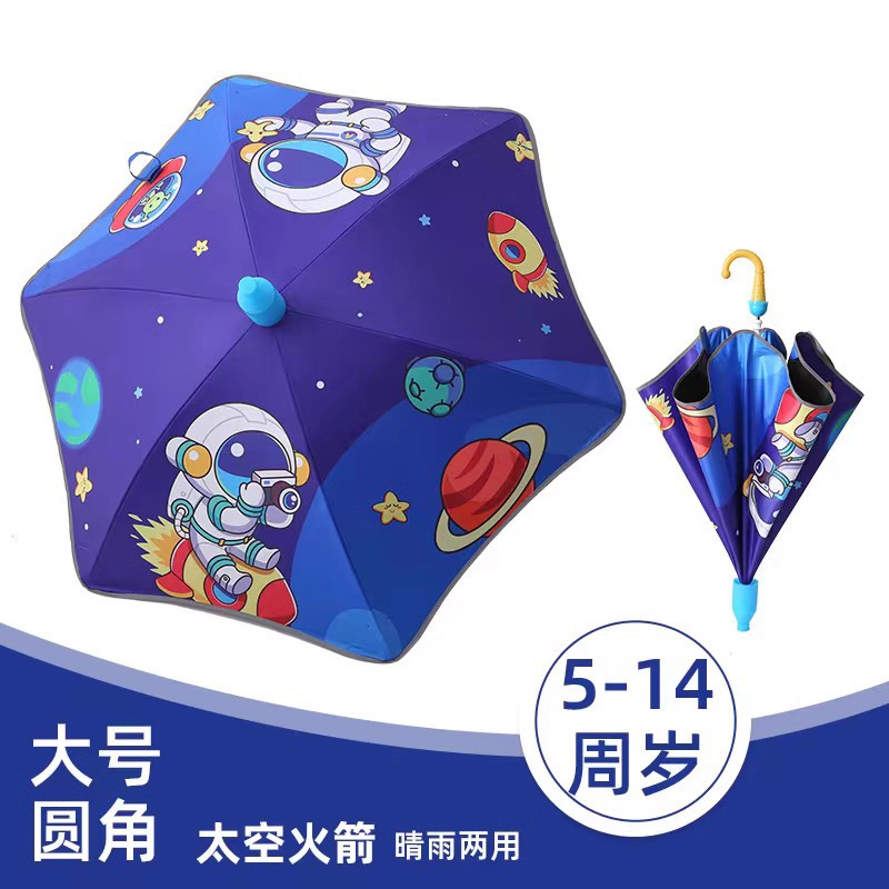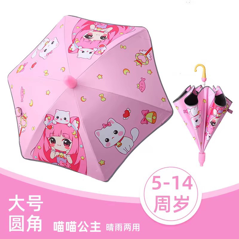 둥근 우산 새로운 만화 찌르기 방지 맑은 우산 유치원 아기 긴 손잡이 어린이 우산 초등학교 어린이 태양 보호 양산 우산