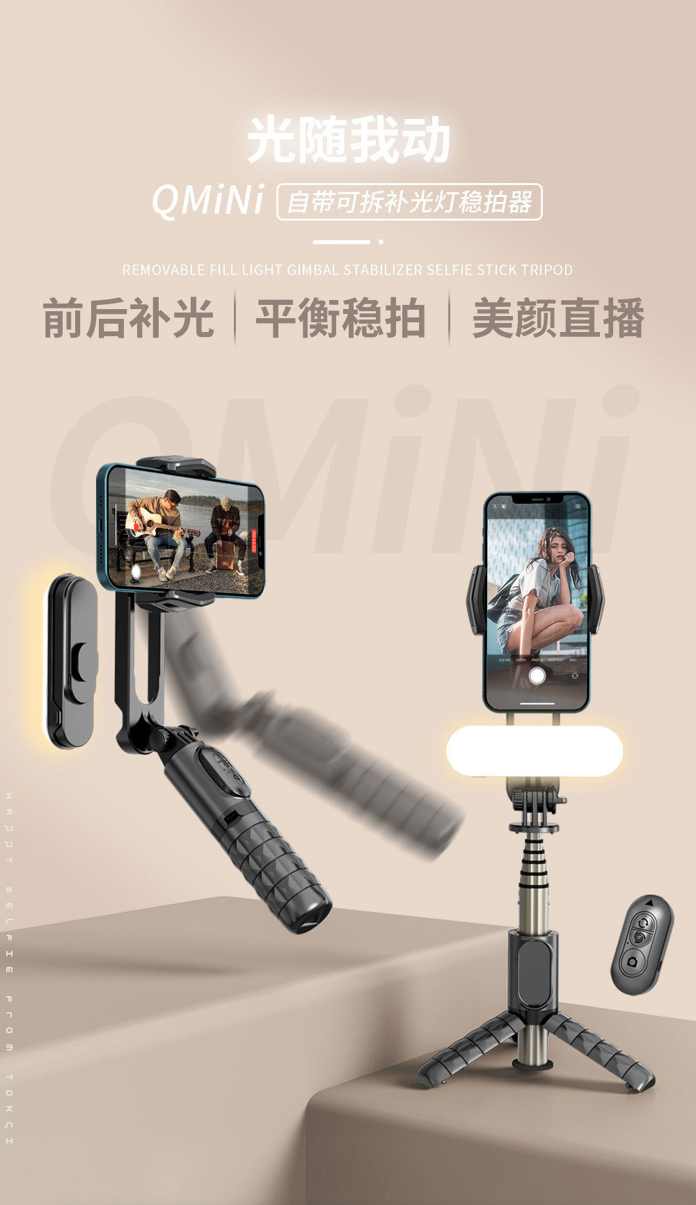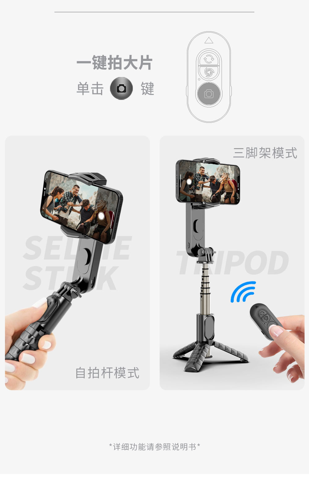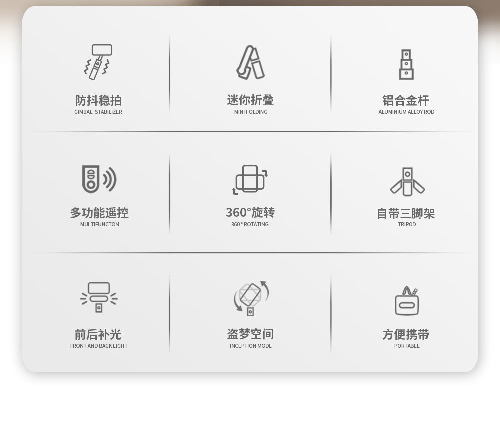 CYKE Douyin 휴대용 안정기 짐벌 단일 축 안정기 통합 셀카 스틱 삼각대 블루투스 필 라이트