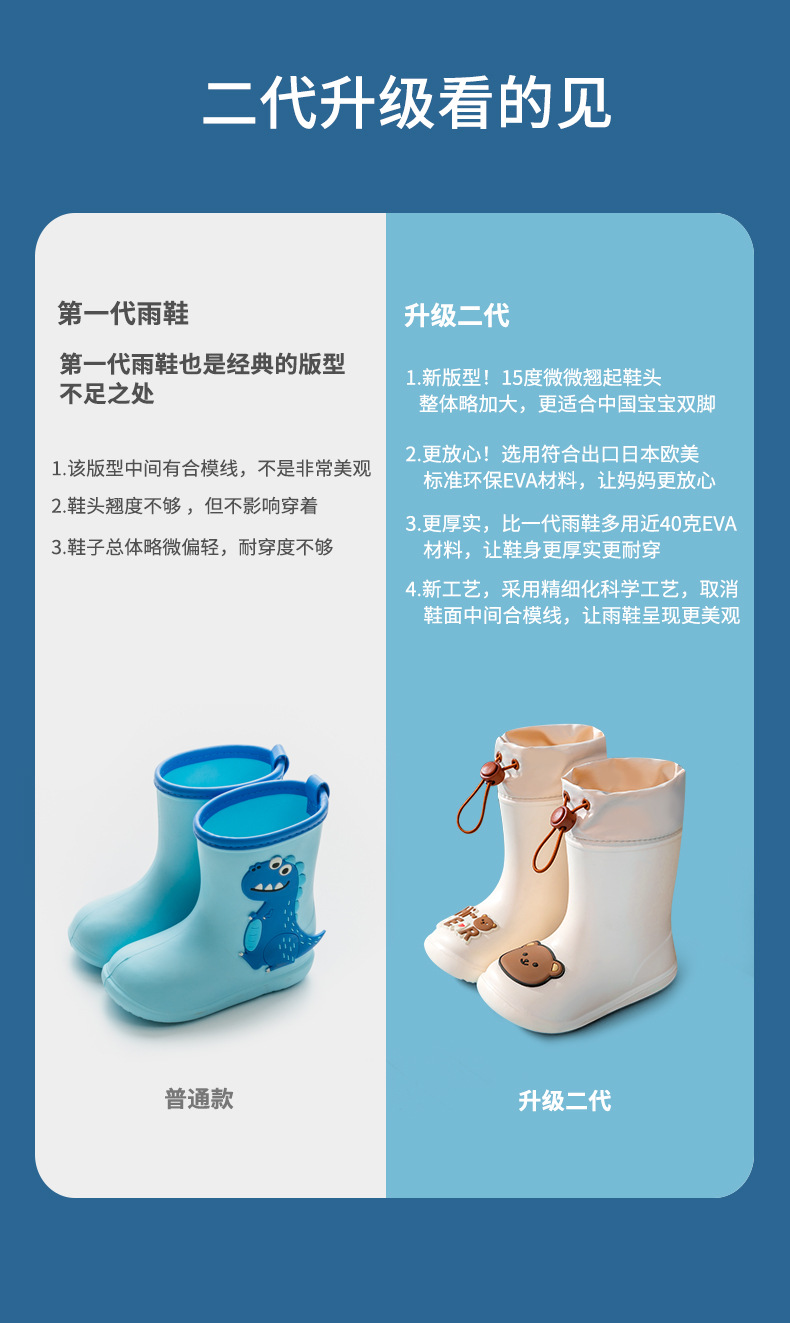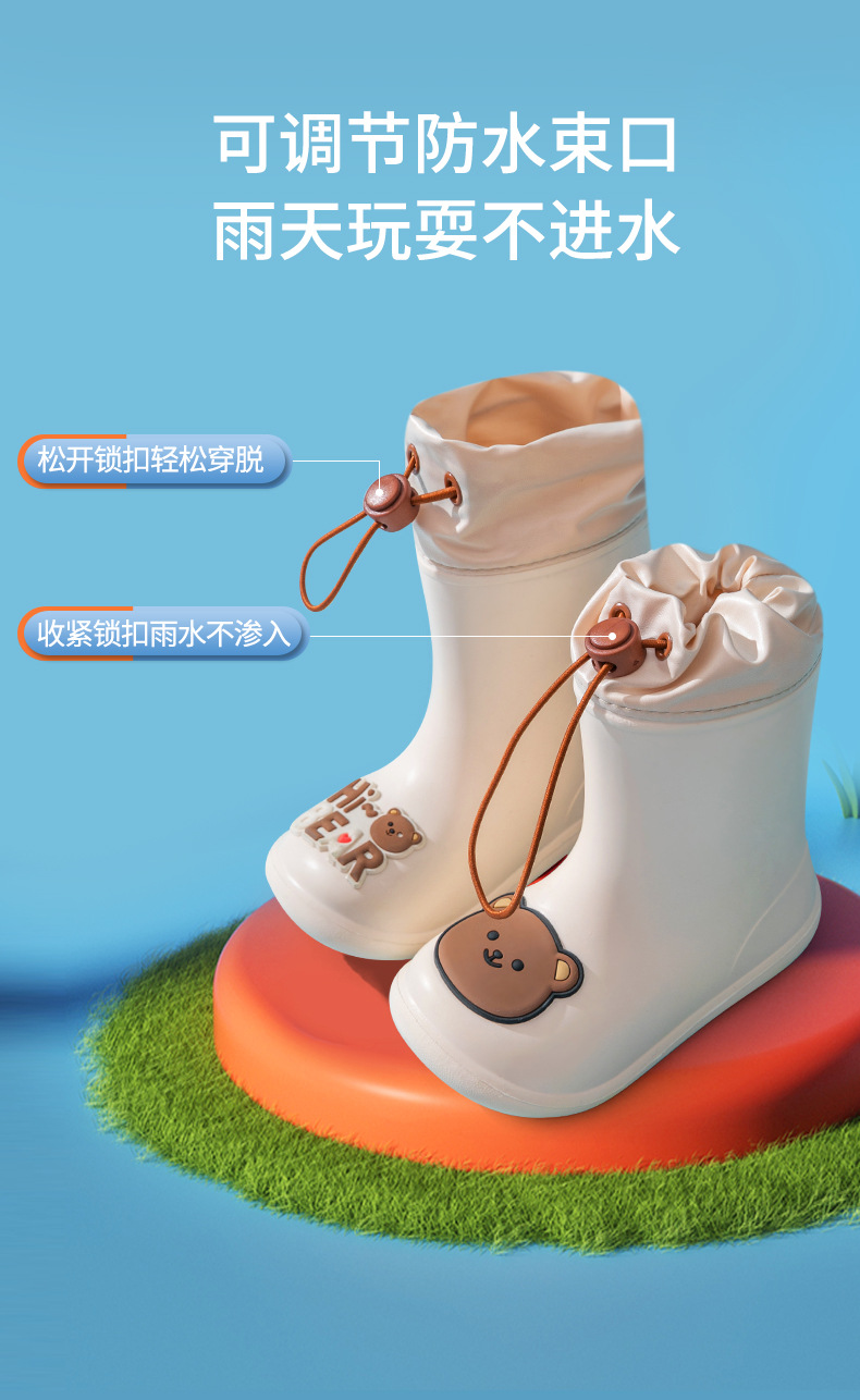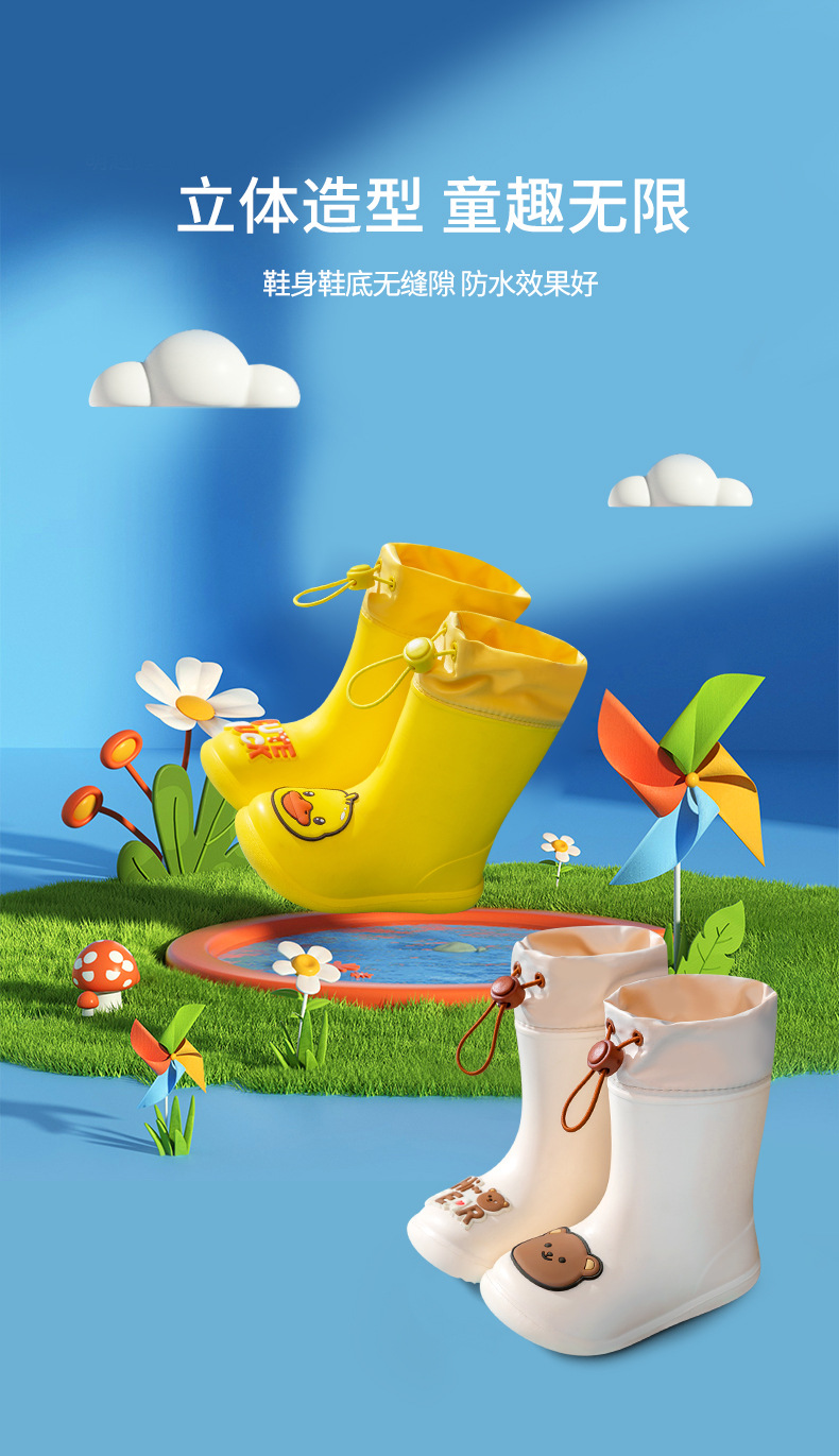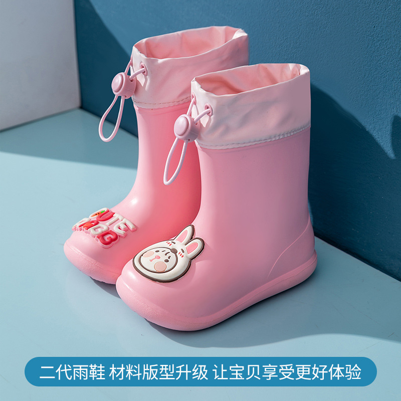 돼지 아빠 어린이 비 신발 어린이 물 신발 소년과 소녀 중간 튜브 비 신발 미끄럼 방지 방수 유치원 물 신발스토어 가기