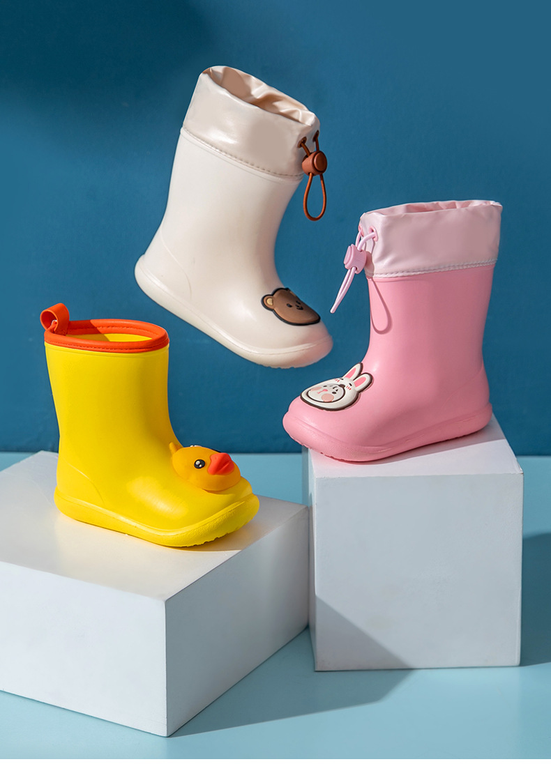 돼지 아빠 어린이 비 신발 어린이 물 신발 소년과 소녀 중간 튜브 비 신발 미끄럼 방지 방수 유치원 물 신발