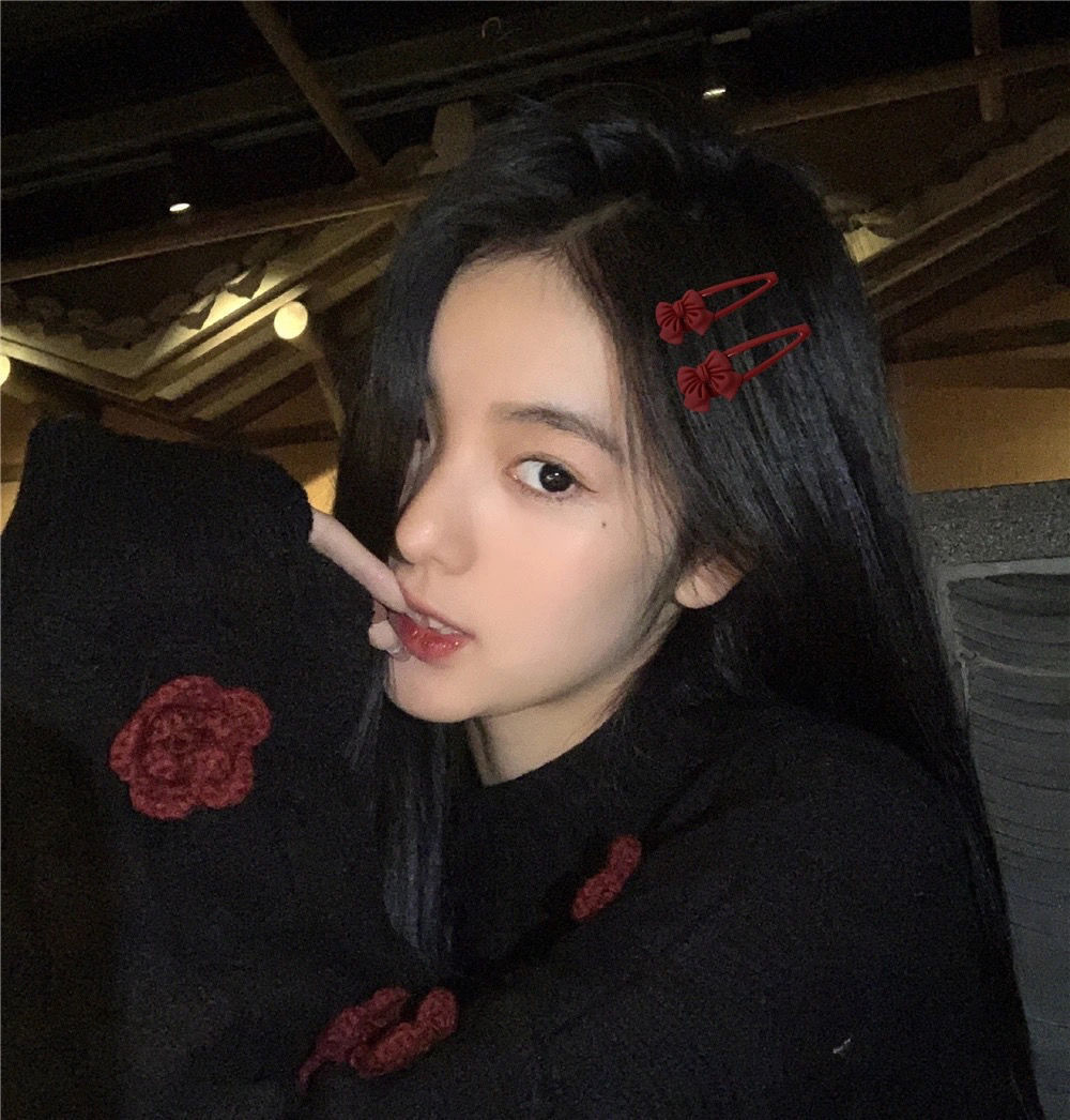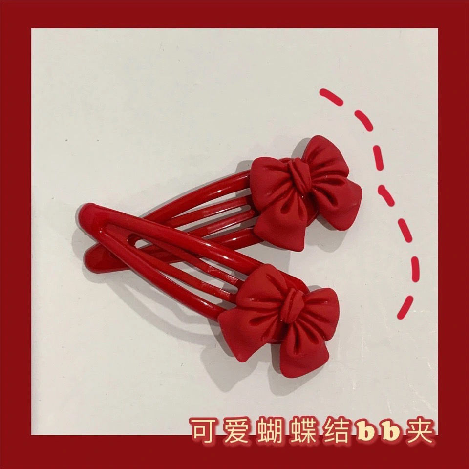 빨간 활 BB 클립 간단한 sweet in 소녀 심장 학생 사이드 클립 앞머리 클립 축제 그물 빨간 머리 액세서리