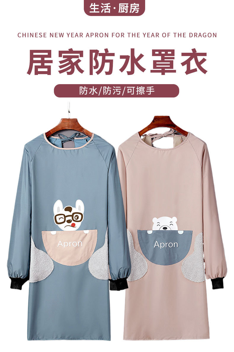 앞치마 긴 소매 만화 주방 방수 및 방오 손 닦기 PVC 가정용 얇은 백화점 전체 성인 도매스토어 가기