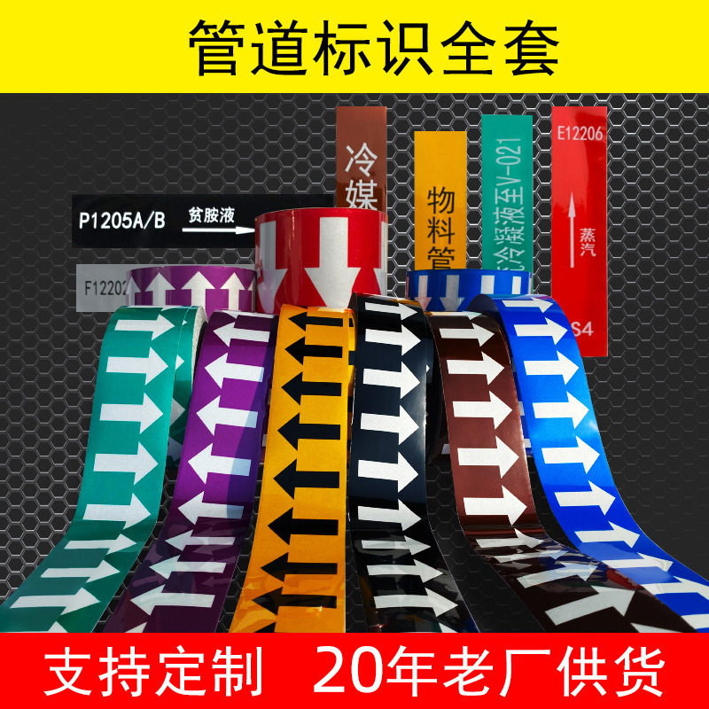 표준 8색 폴리스티렌 반사 파이프라인 로고 도매 파이프라인 컬러 링 미디어 흐름 방향 화살표 로고 스티커스토어 가기
