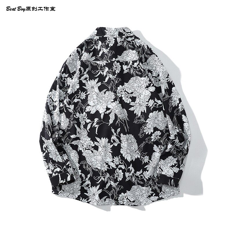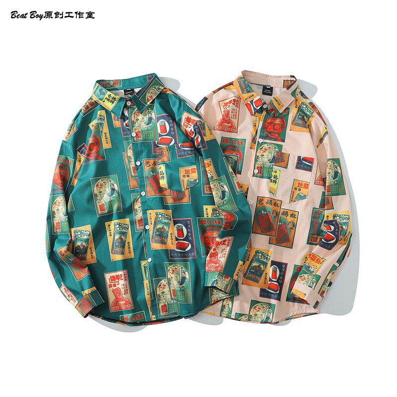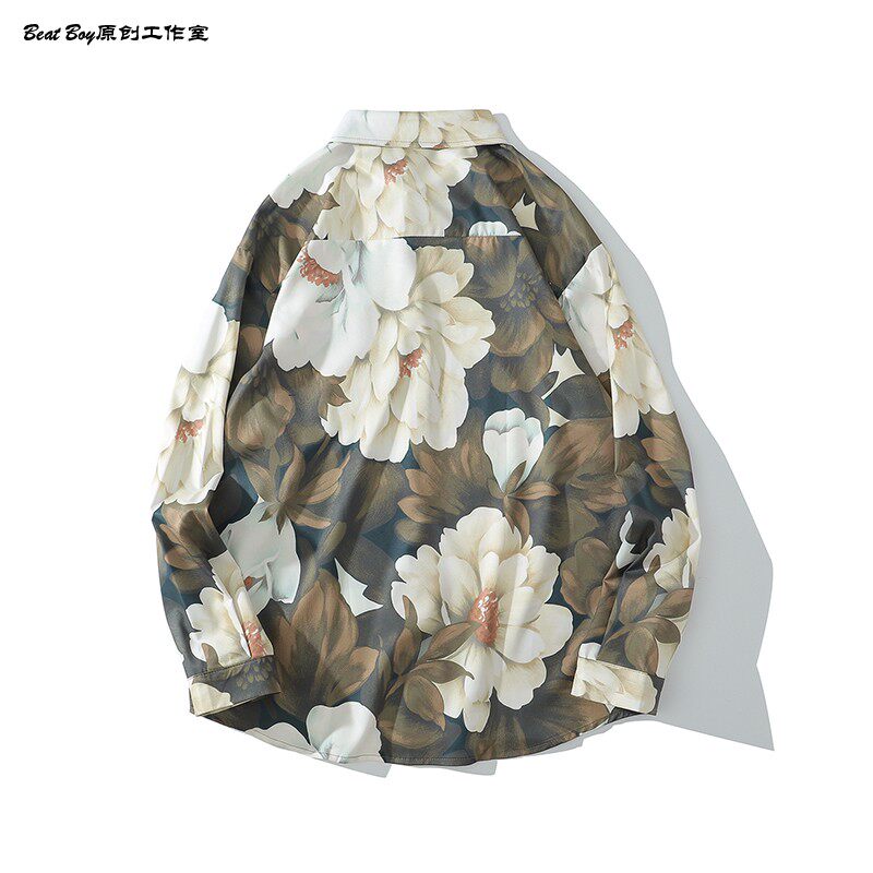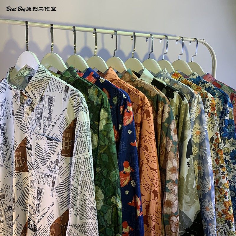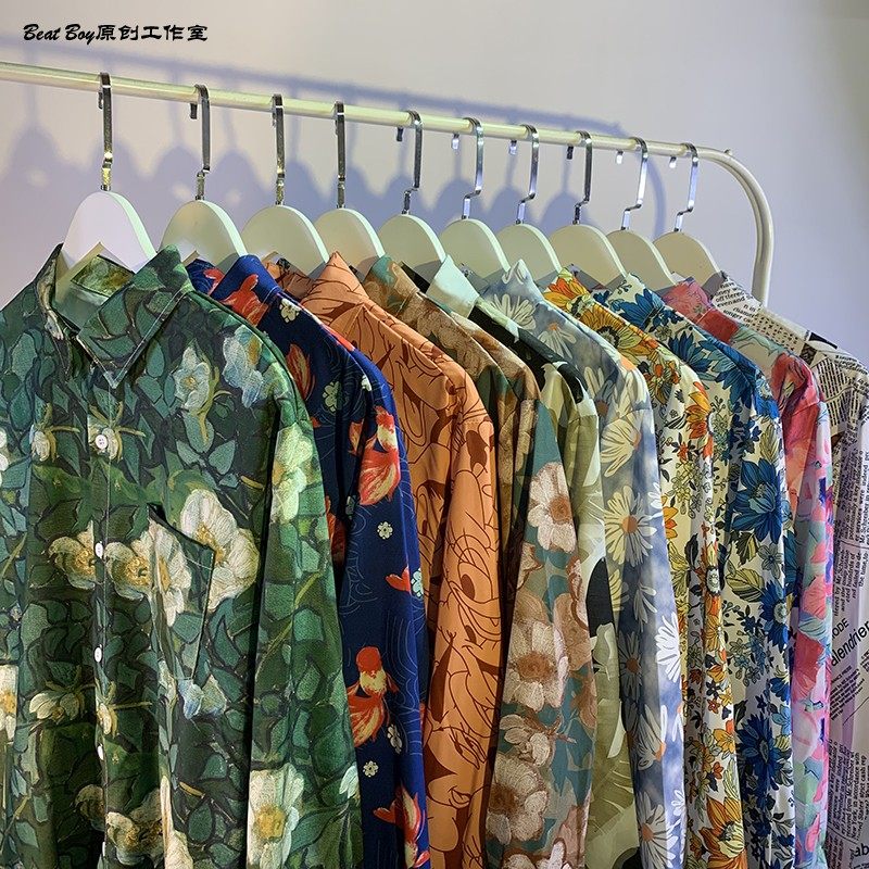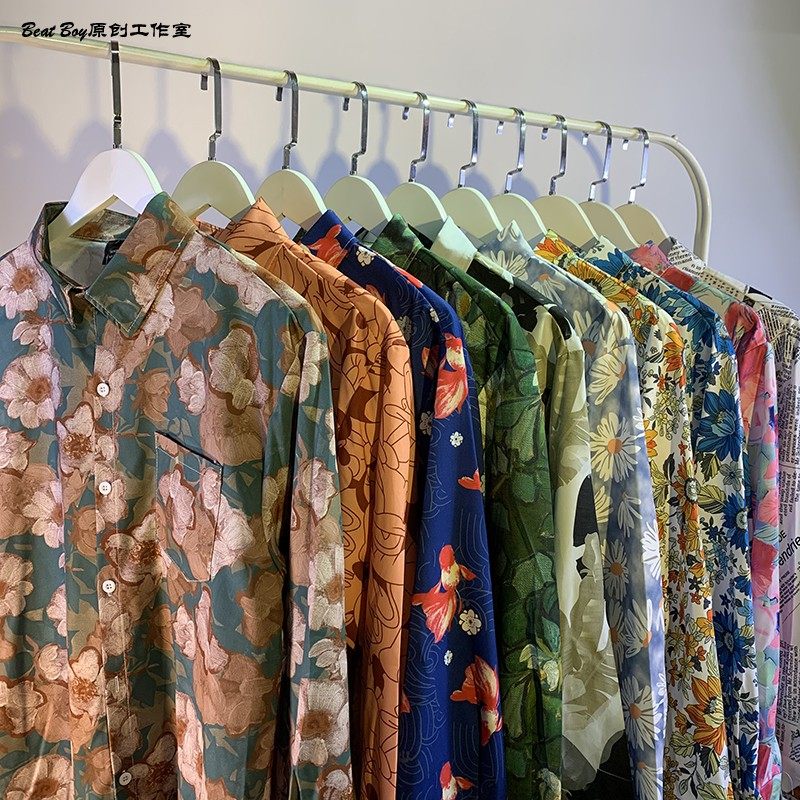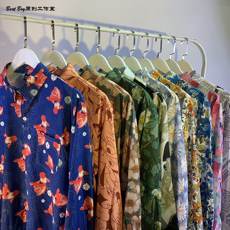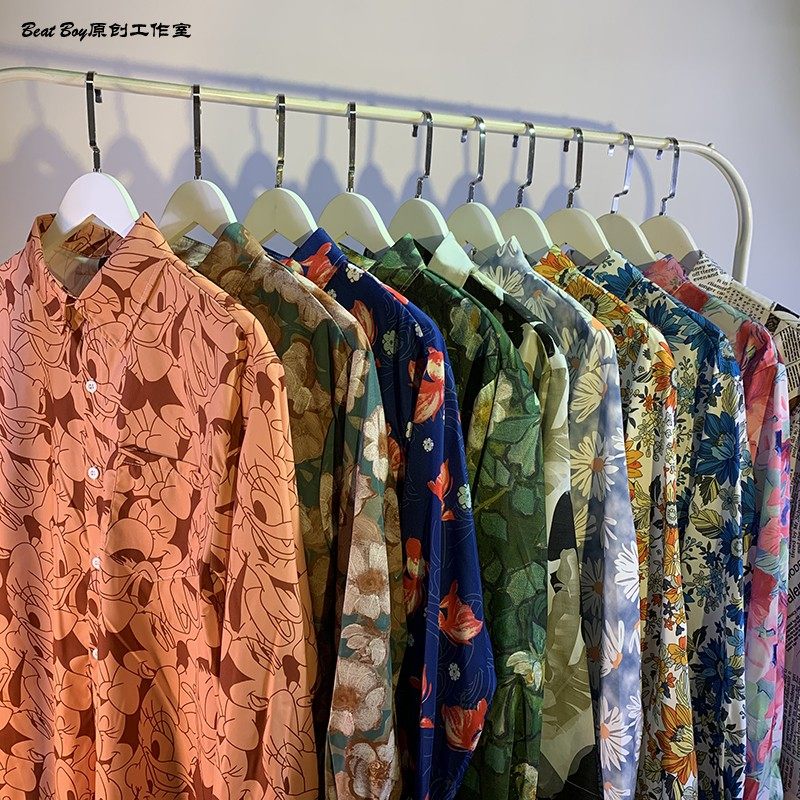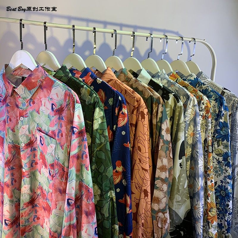 헤어 레트로 풀 프린트 긴 소매 꽃 무늬 셔츠 남성용 틈새 골동품 유피 향수 80 년대 셔츠 남성과 여성스토어 가기