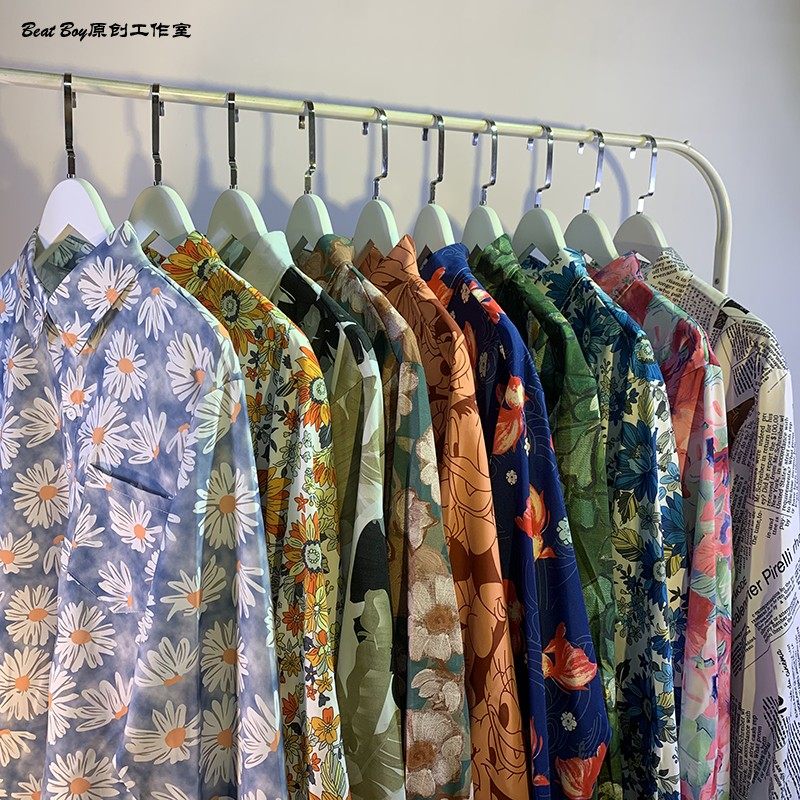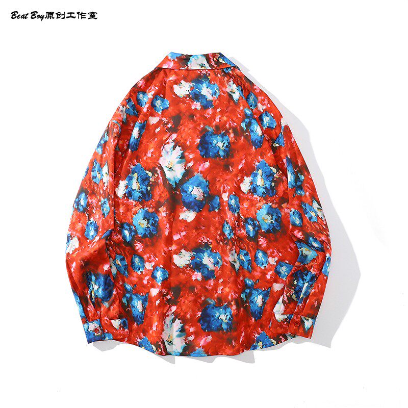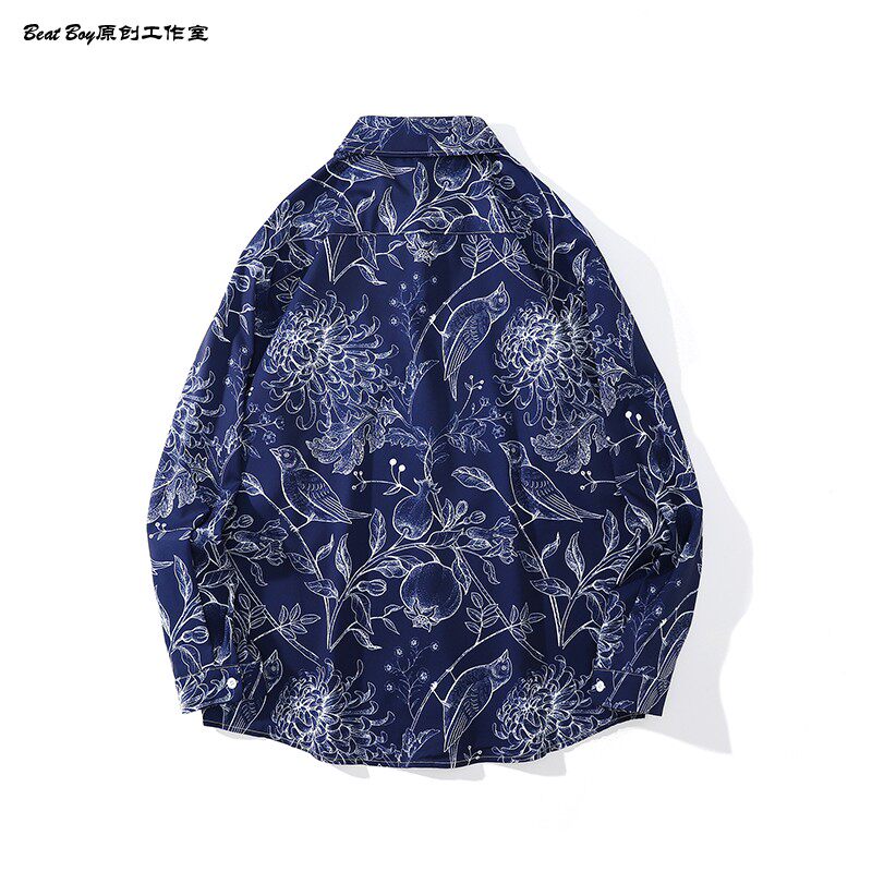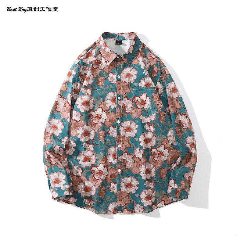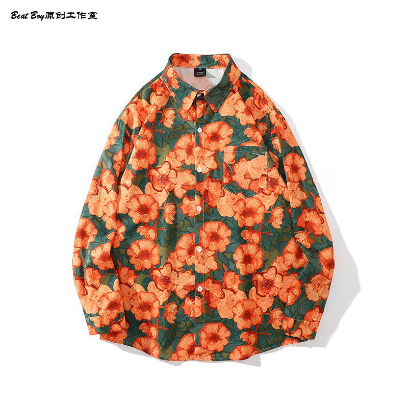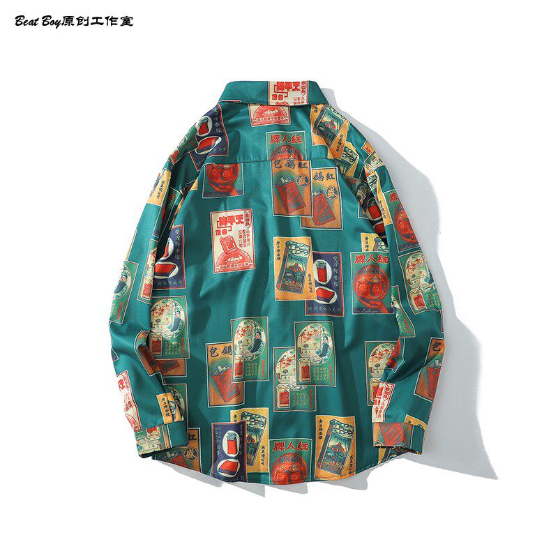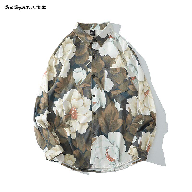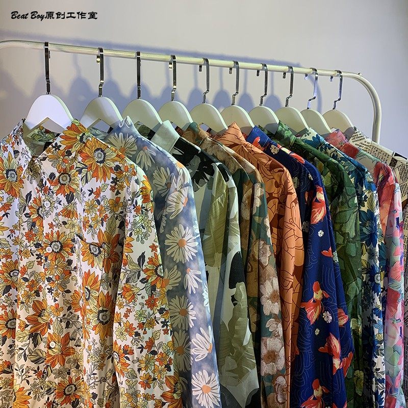 헤어 레트로 풀 프린트 긴 소매 꽃 무늬 셔츠 남성용 틈새 골동품 유피 향수 80 년대 셔츠 남성과 여성스토어 가기