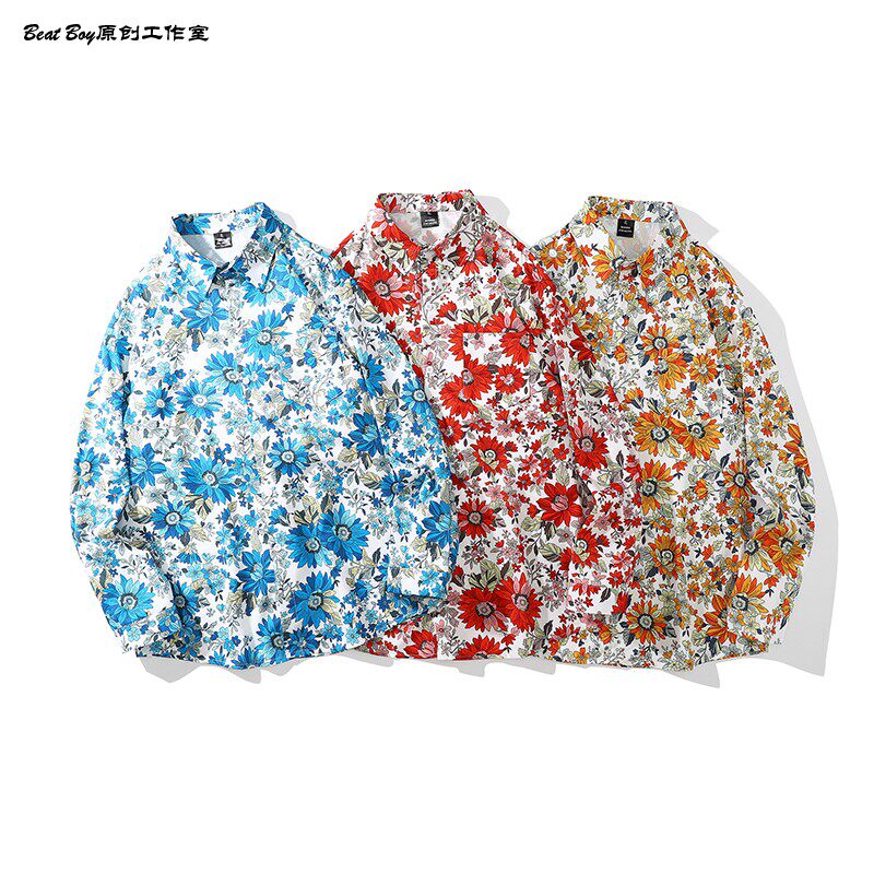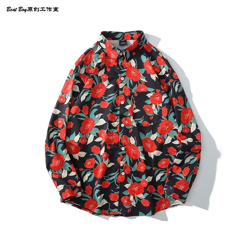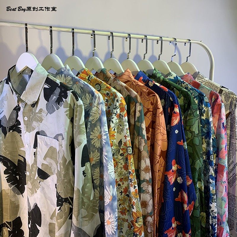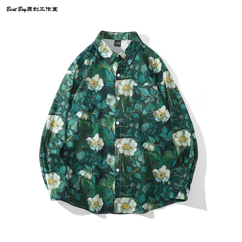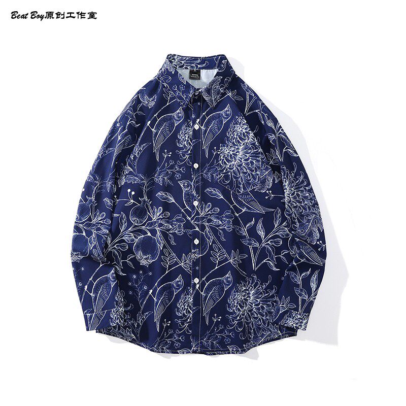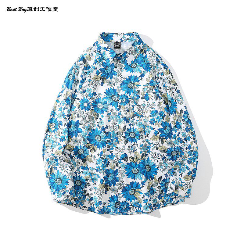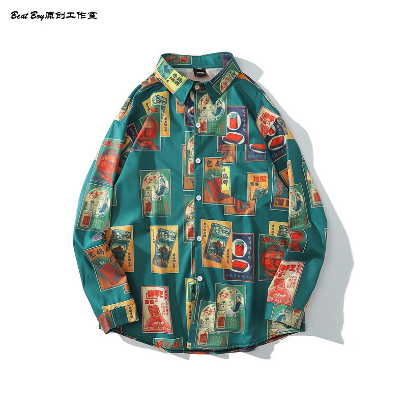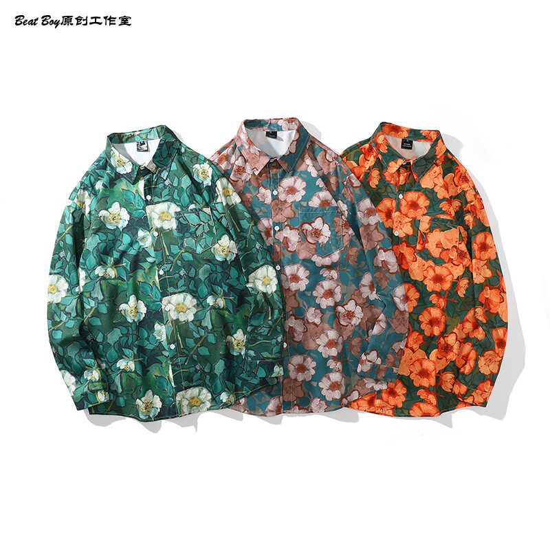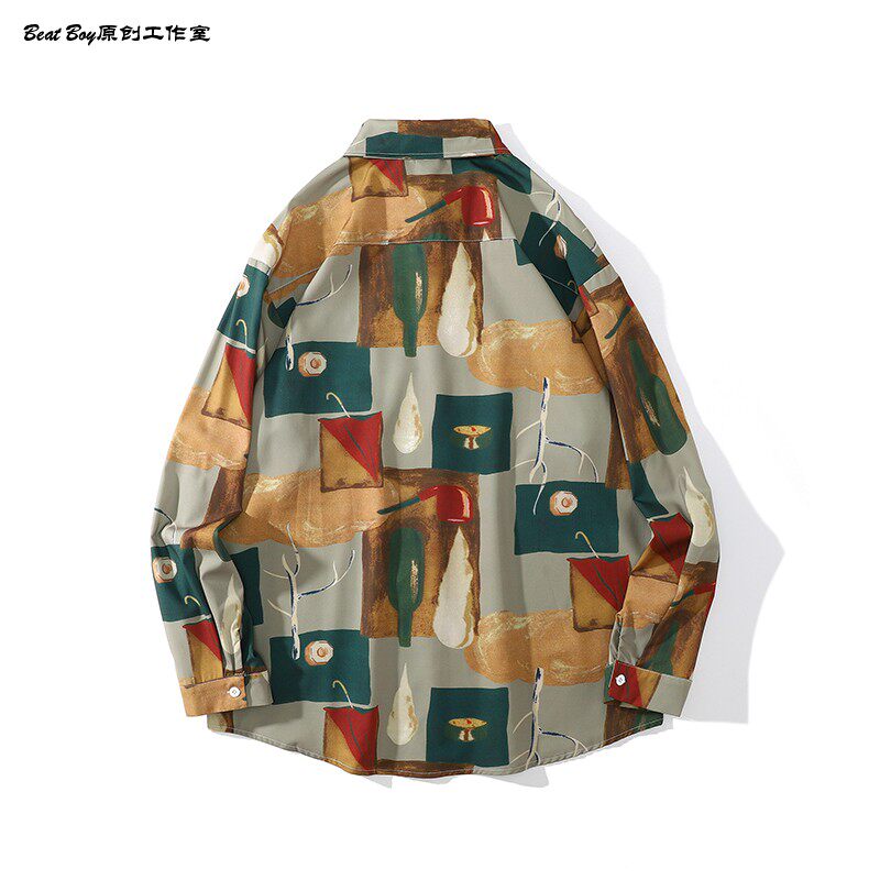 헤어 레트로 풀 프린트 긴 소매 꽃 무늬 셔츠 남성용 틈새 골동품 유피 향수 80 년대 셔츠 남성과 여성스토어 가기