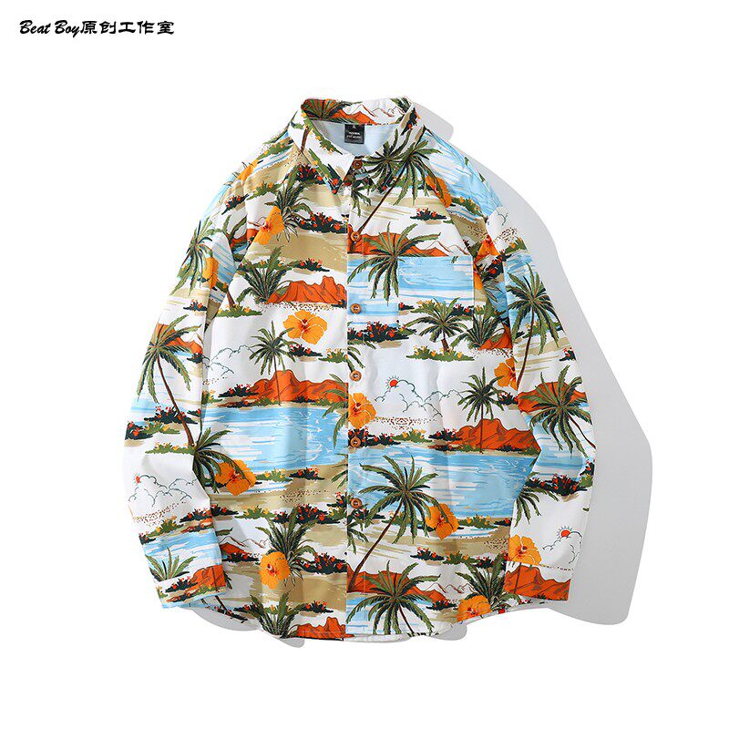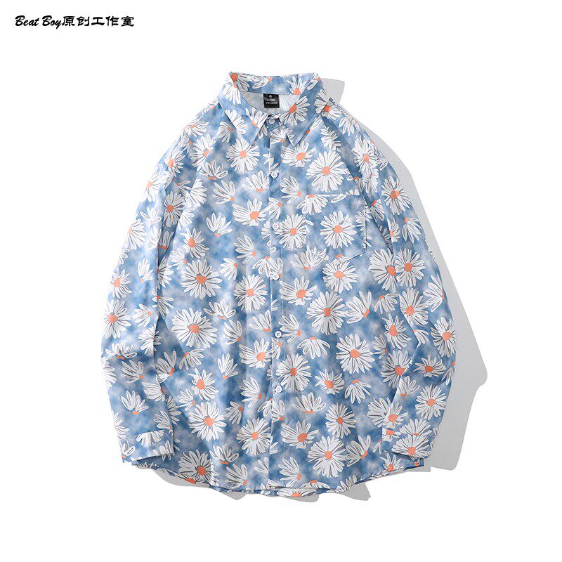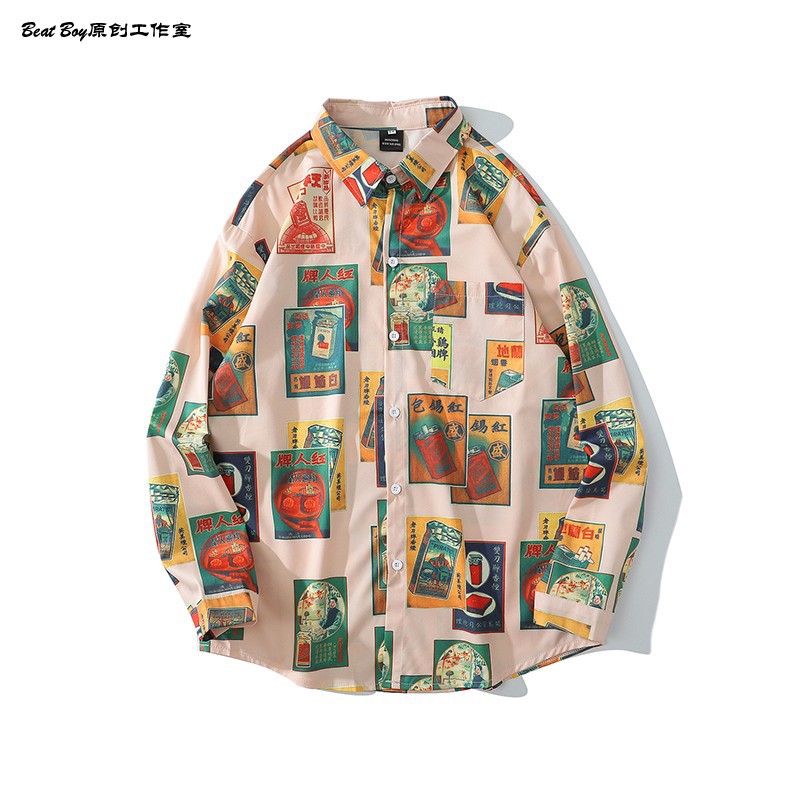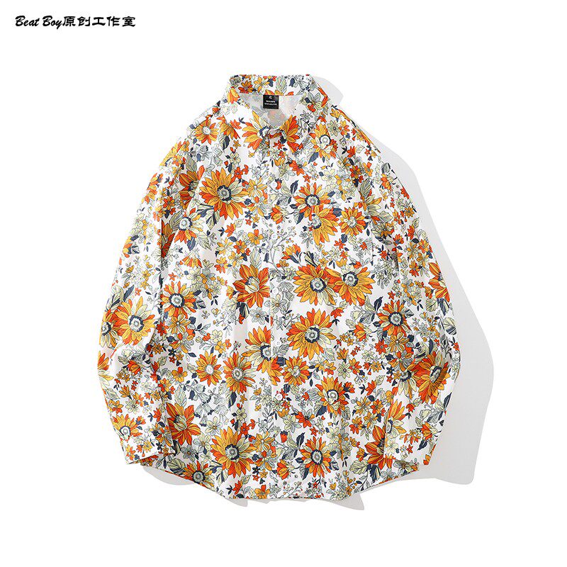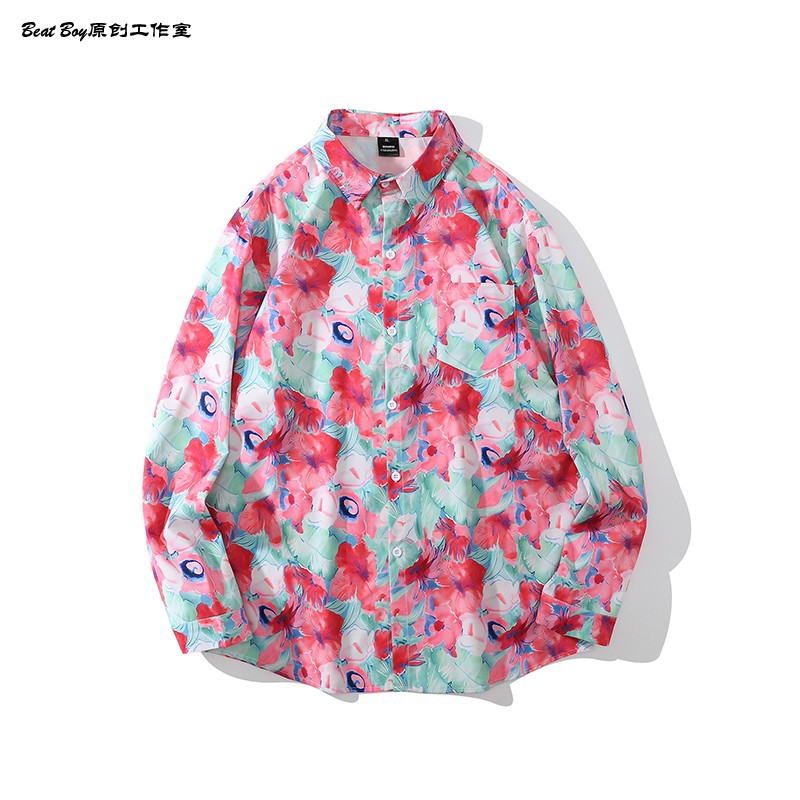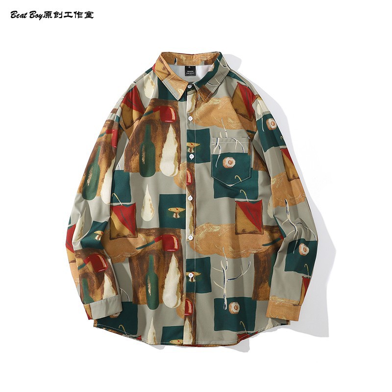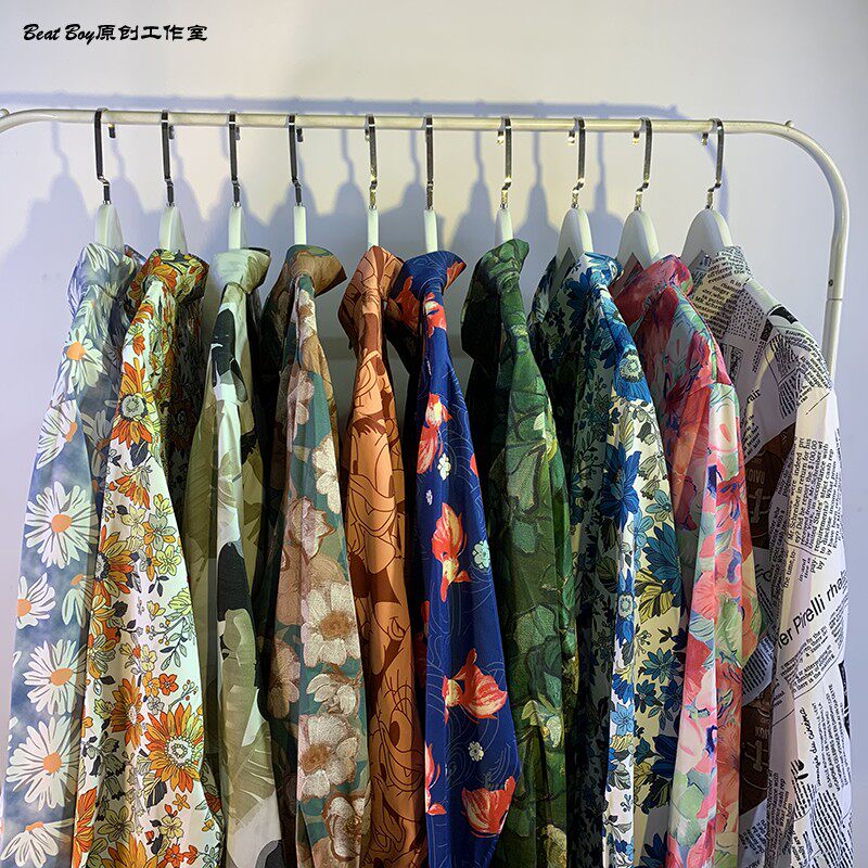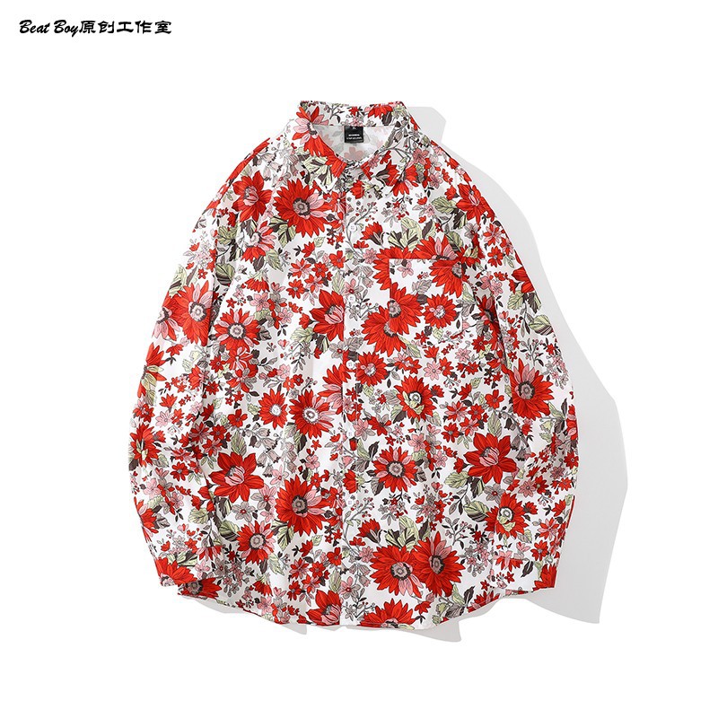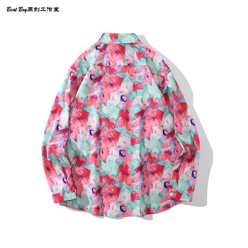 헤어 레트로 풀 프린트 긴 소매 꽃 무늬 셔츠 남성용 틈새 골동품 유피 향수 80 년대 셔츠 남성과 여성스토어 가기