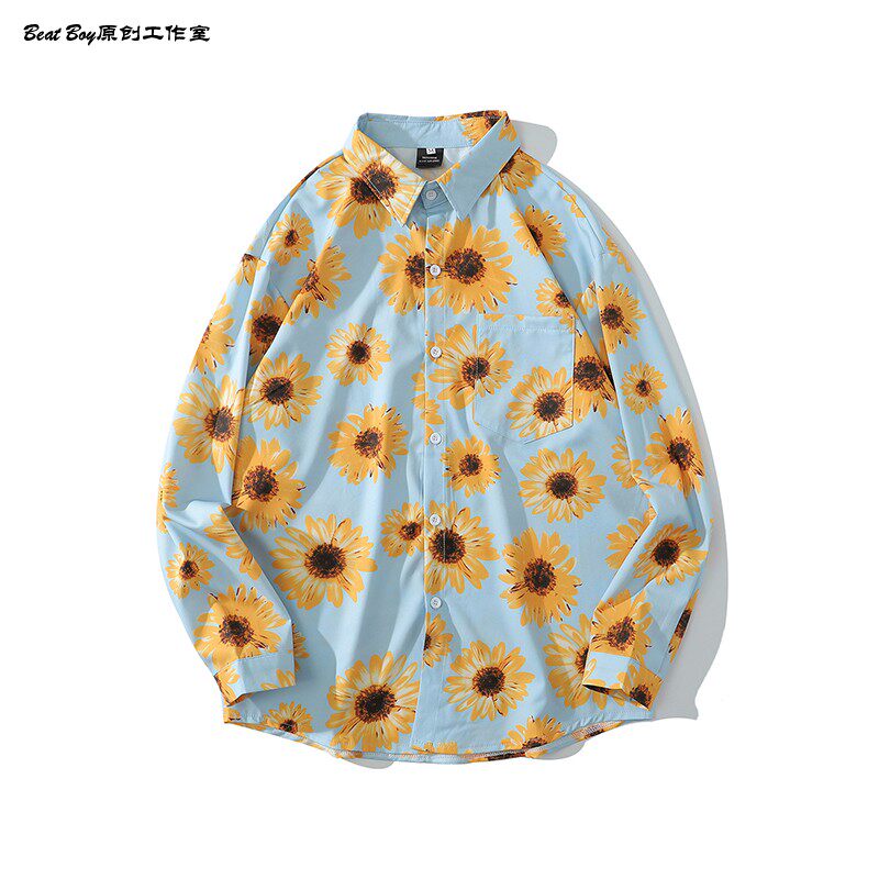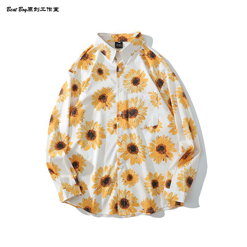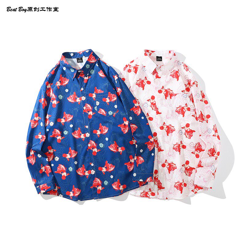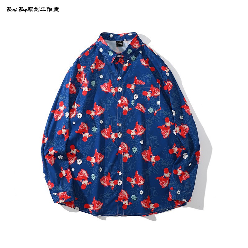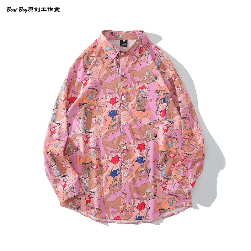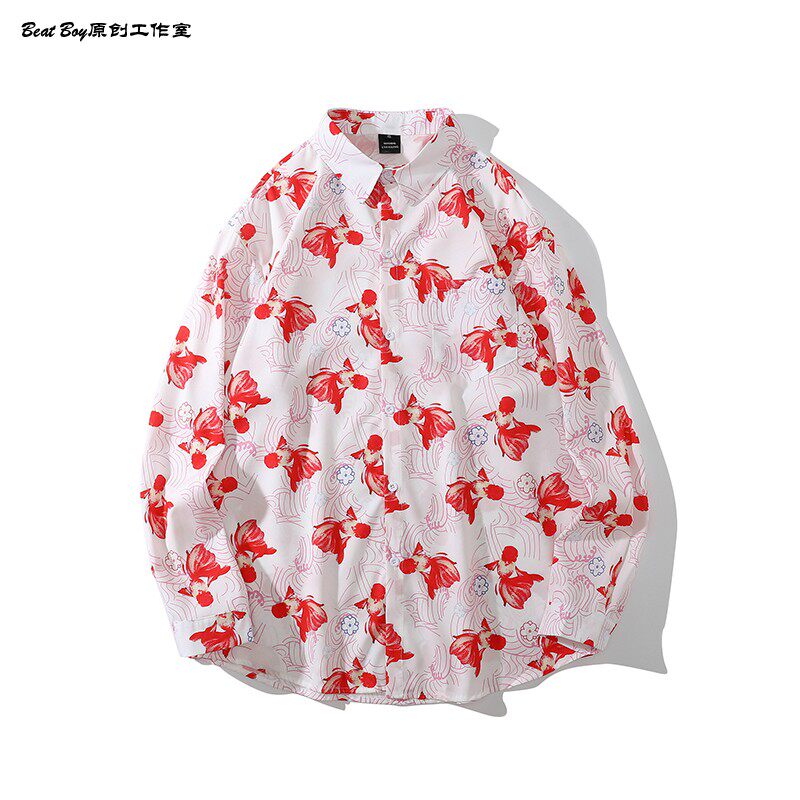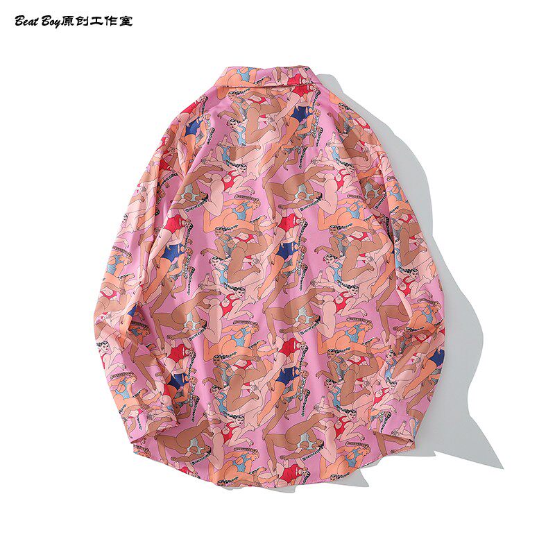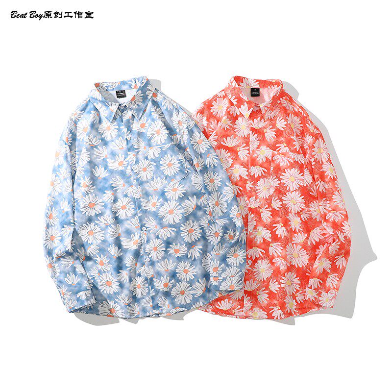 헤어 레트로 풀 프린트 긴 소매 꽃 무늬 셔츠 남성용 틈새 골동품 유피 향수 80 년대 셔츠 남성과 여성스토어 가기