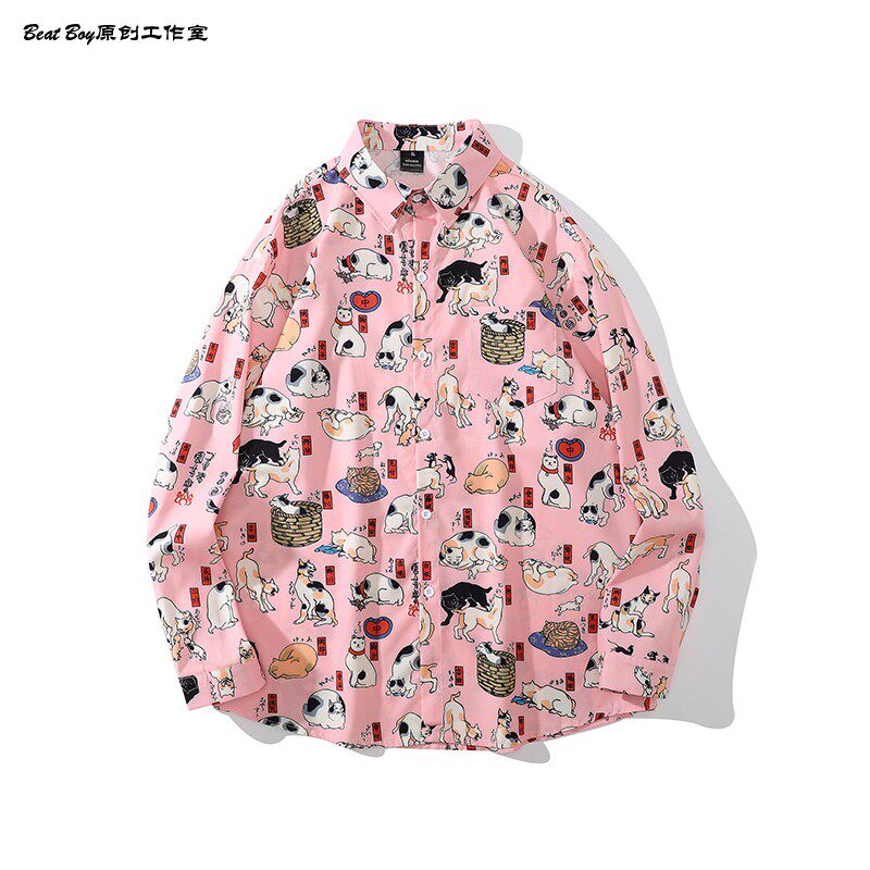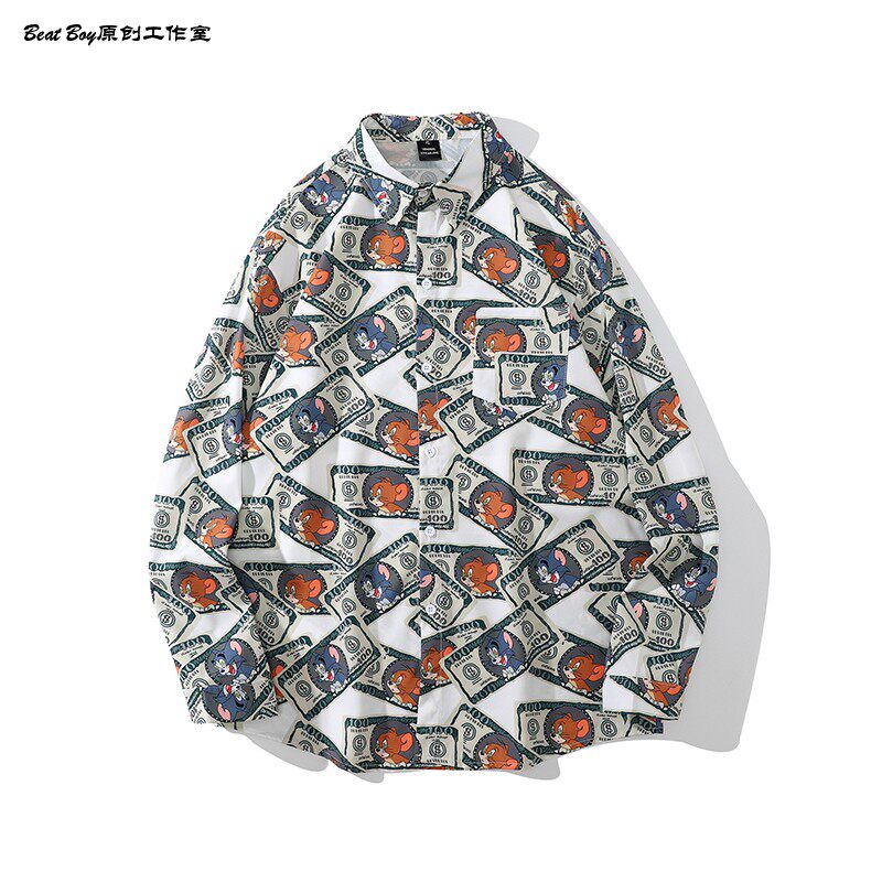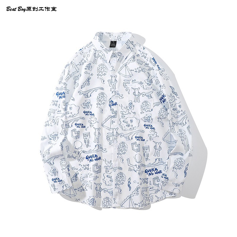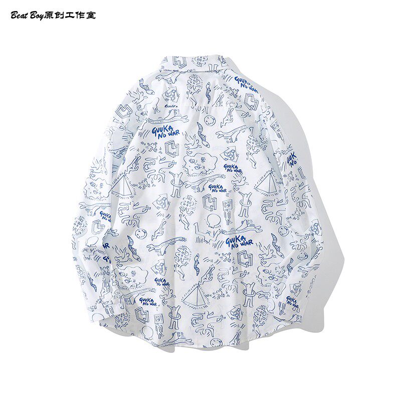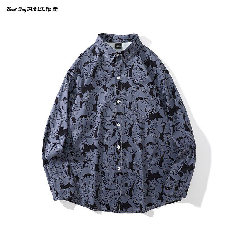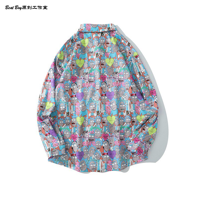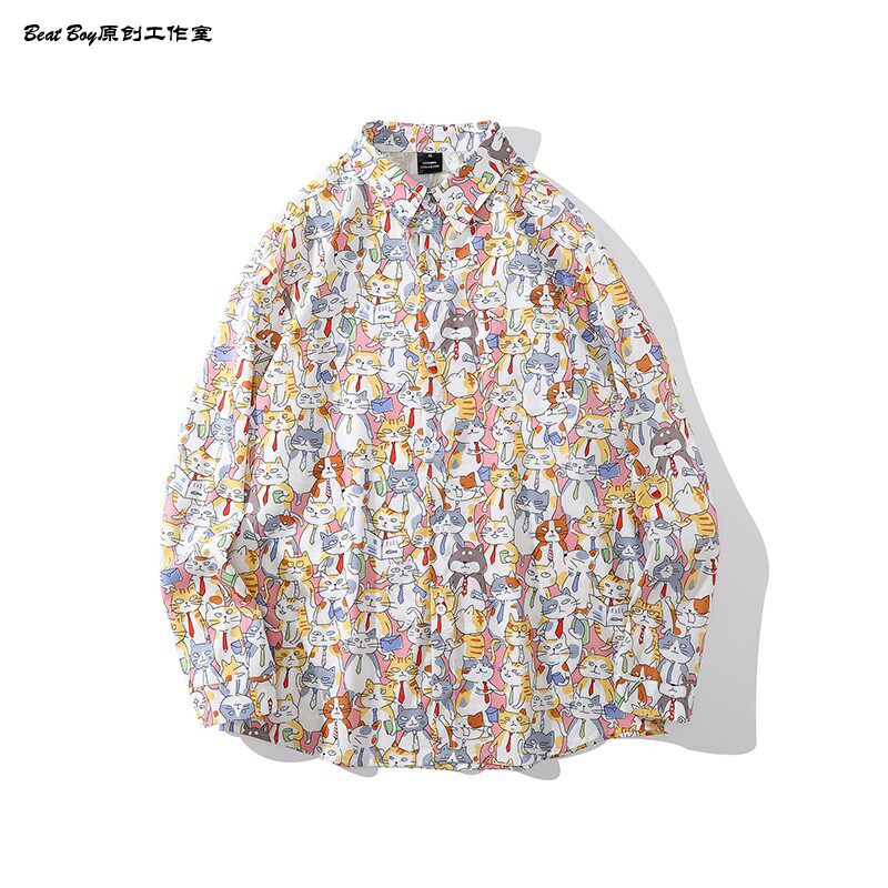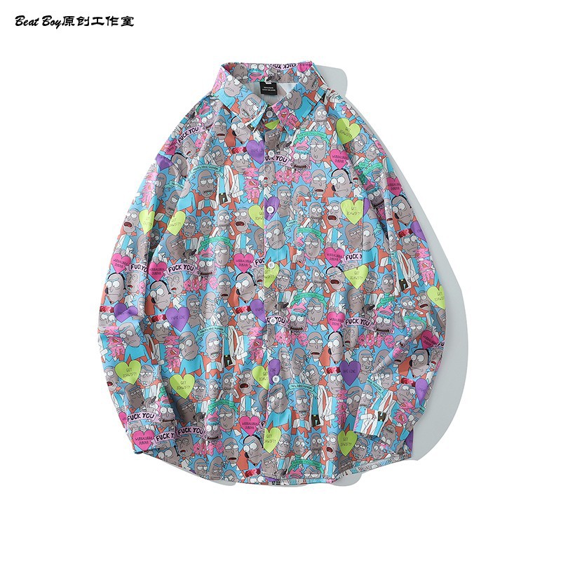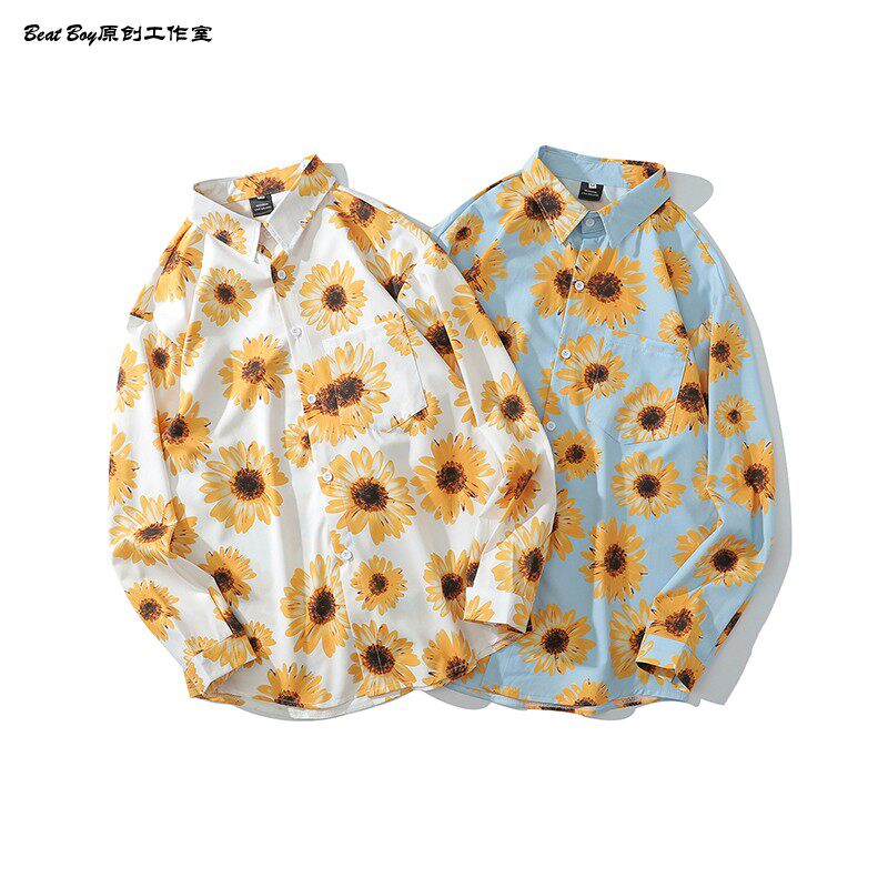 헤어 레트로 풀 프린트 긴 소매 꽃 무늬 셔츠 남성용 틈새 골동품 유피 향수 80 년대 셔츠 남성과 여성스토어 가기