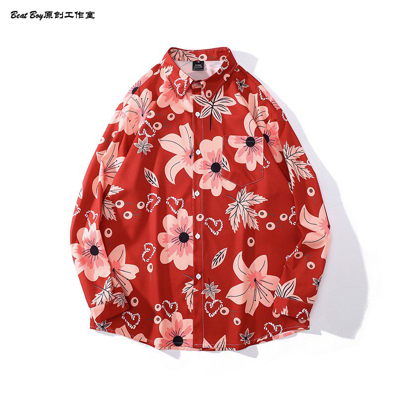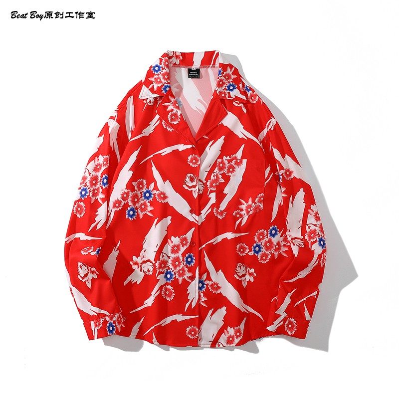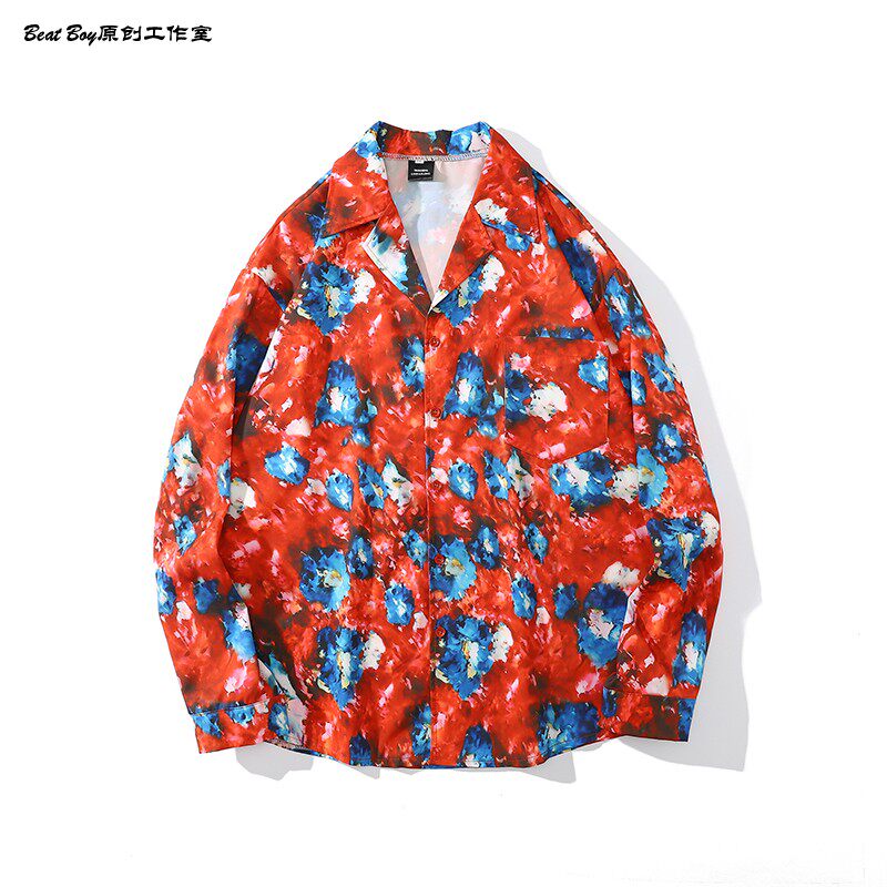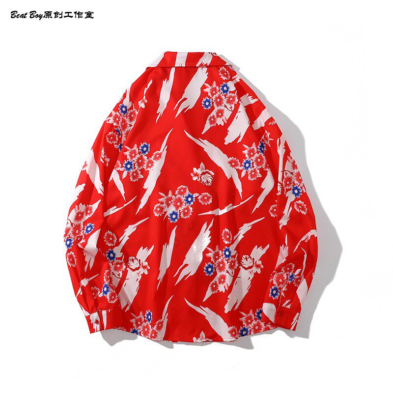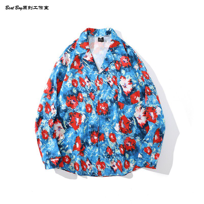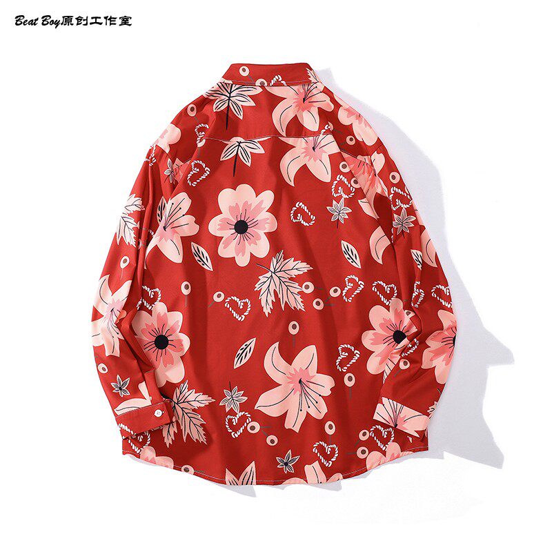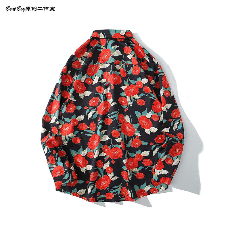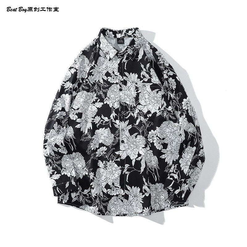 헤어 레트로 풀 프린트 긴 소매 꽃 무늬 셔츠 남성용 틈새 골동품 유피 향수 80 년대 셔츠 남성과 여성