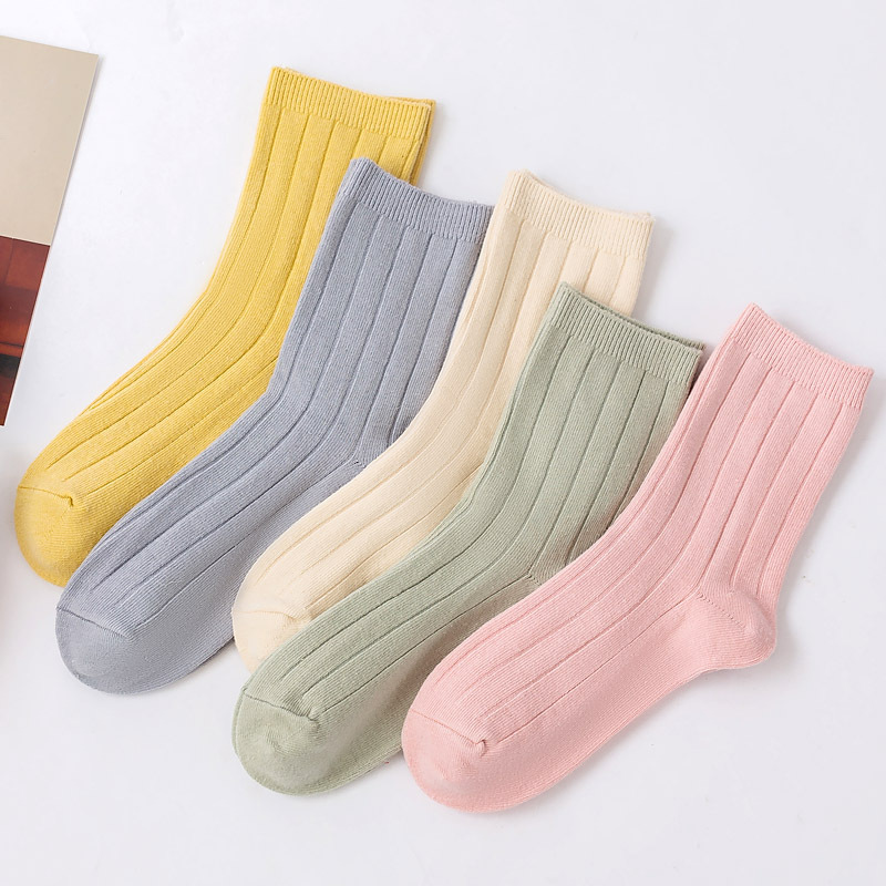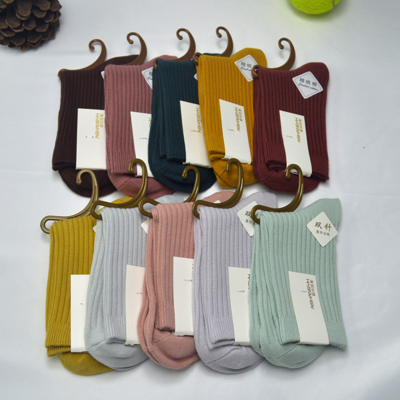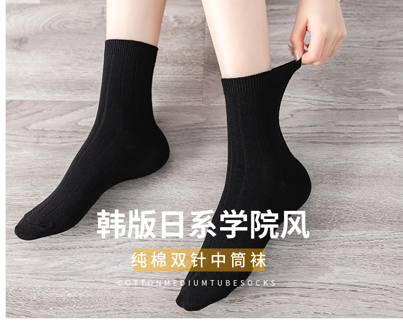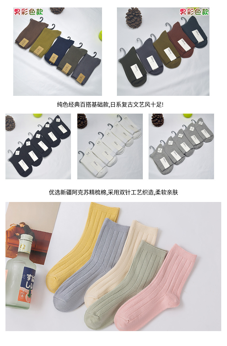 냄새 방지 남성용 더블 니들 양말, 긴 양말, 단색 니트 면 양말, 땀 흡수 남녀공용 양말, 여성용 봄 가을 중목 양말 도매스토어 가기