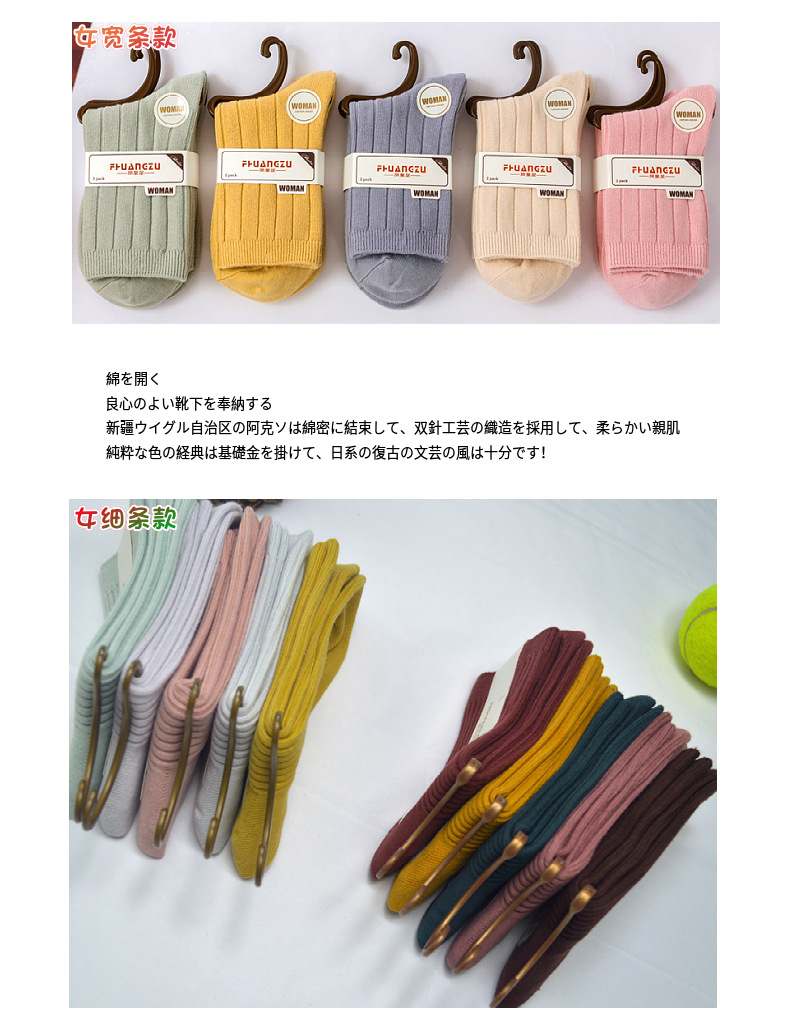 • 더블 바늘이있는 여성용 와이드 코튼 양말