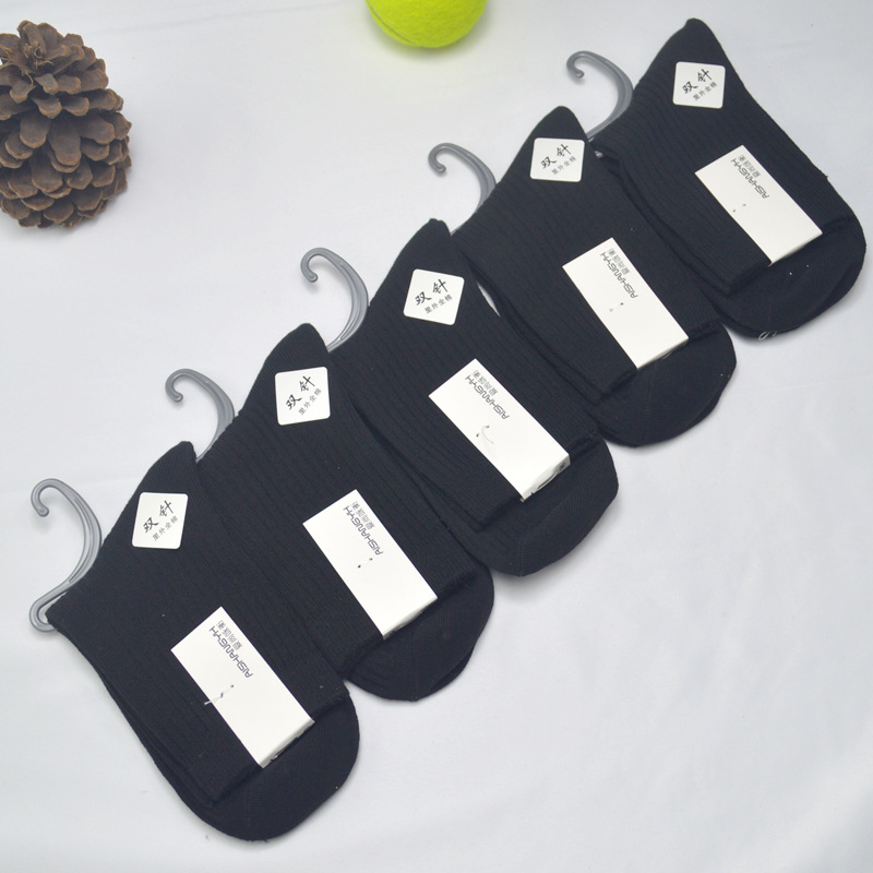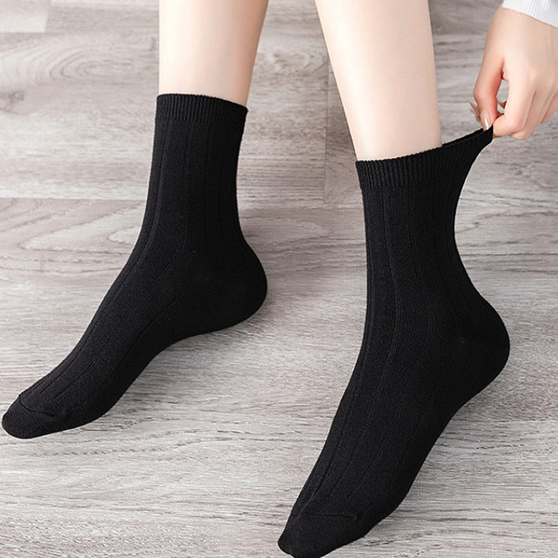 • 여성용 와이드 블랙 더블 니들 코튼 양말