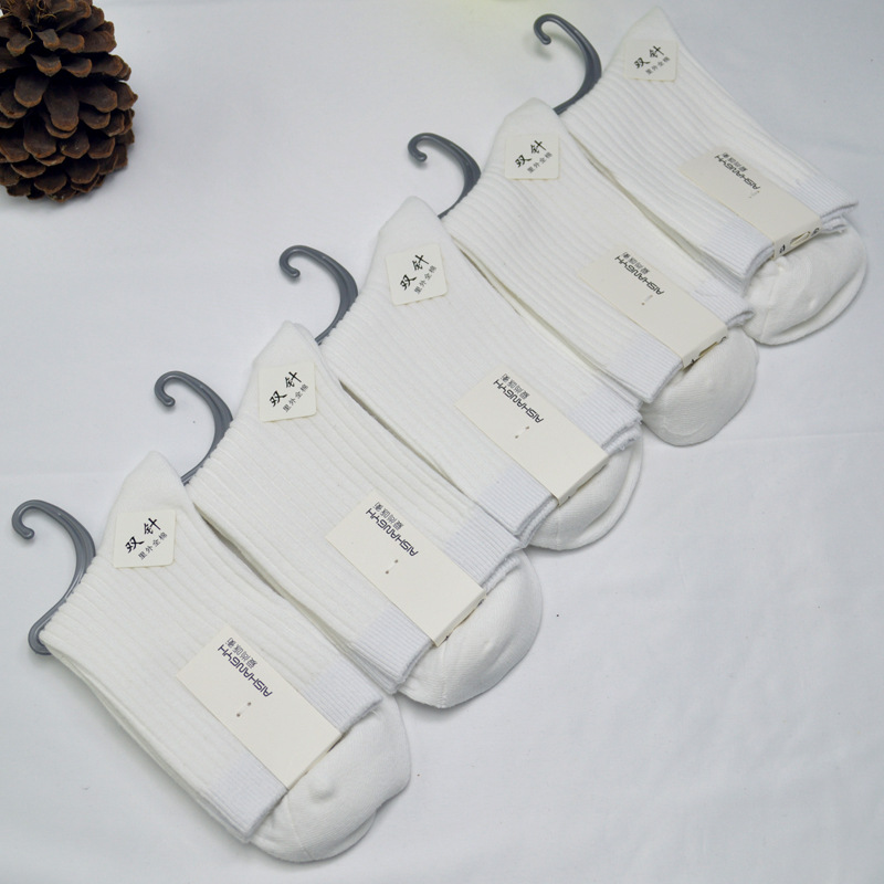 • 여성용 와이드 화이트 더블 니들 코튼 양말