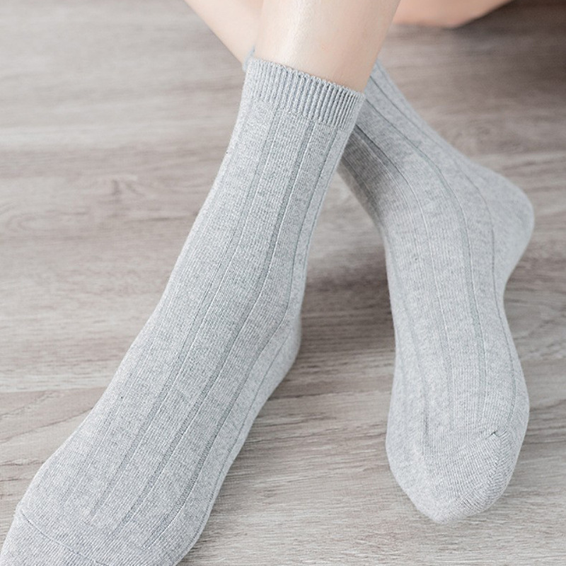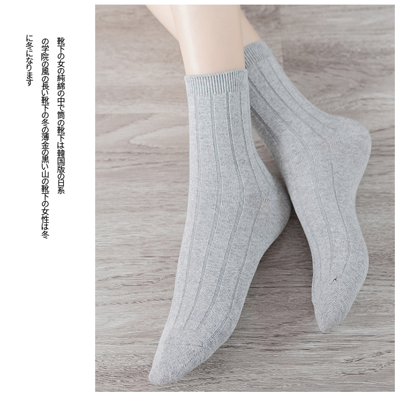 • 여성용 와이드 그레이 더블 니들 코튼 양말