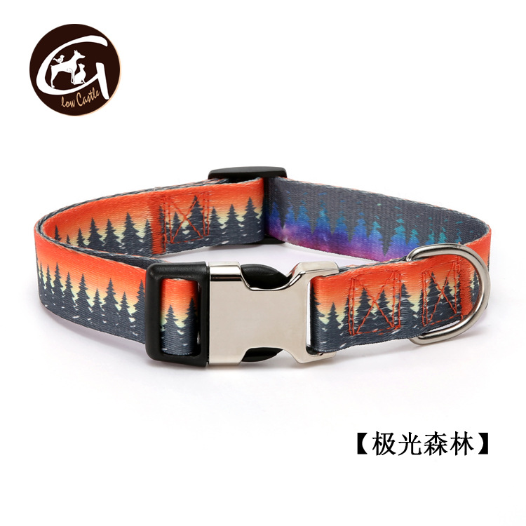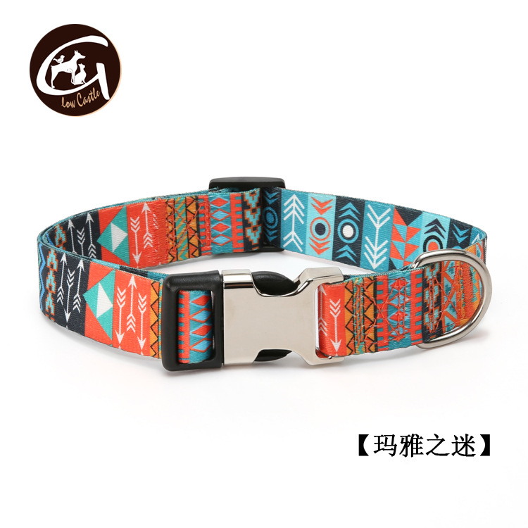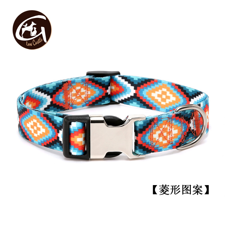 폭발적인 도매 애완 동물 목걸이 개 로프 개 목걸이 민족 스타일 줄무늬 숲 패턴 칼라 레터링 칼라