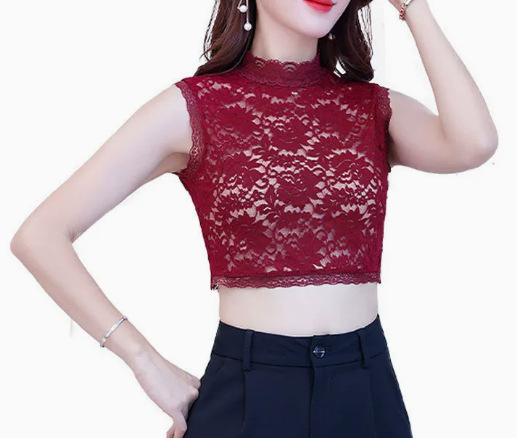 하프 하이 칼라 민소매 레이스 조끼 여성용 여름 섹시한 내부베이스 셔츠 타이트 여성용 메쉬 탑 세로 칼라스토어 가기