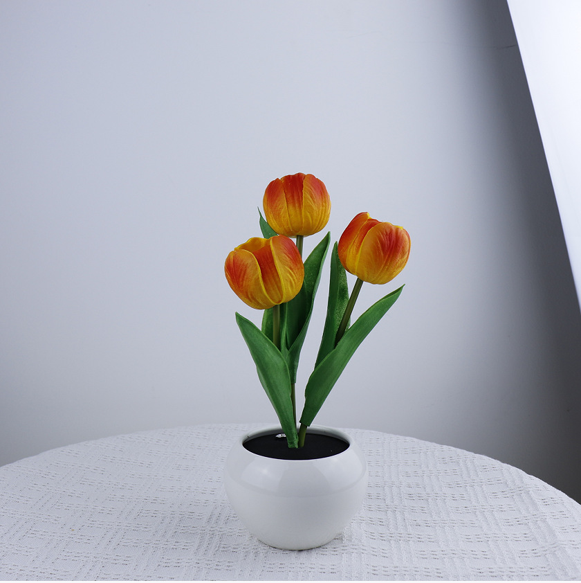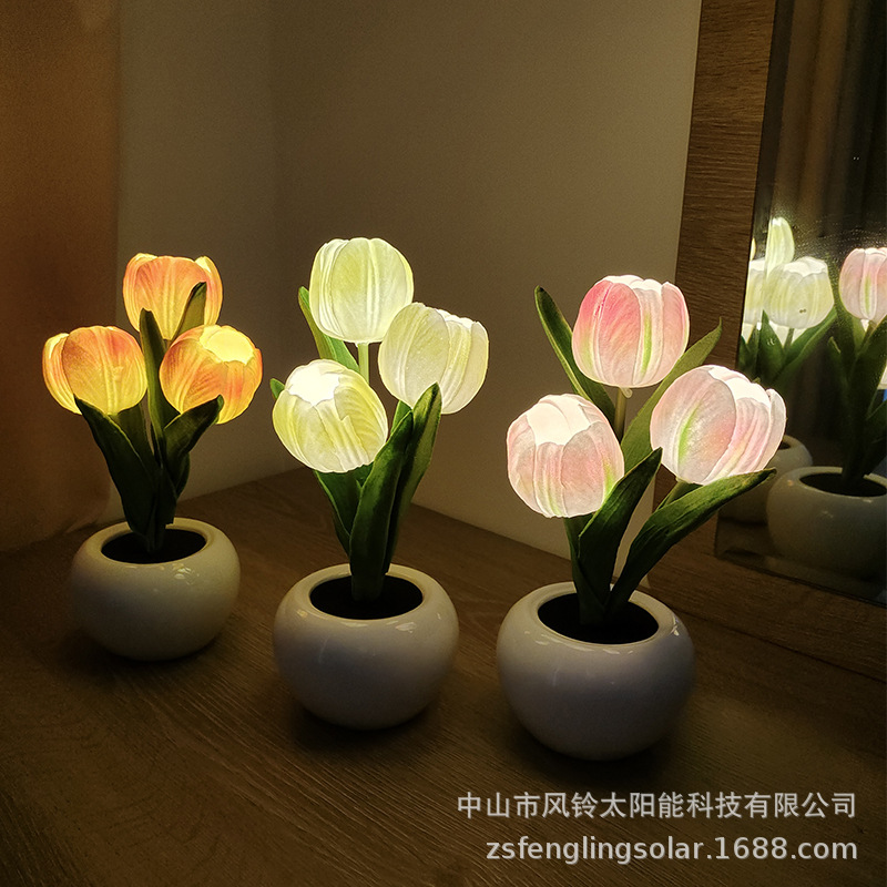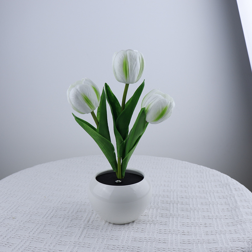 1. LED花盆景特点:将LED固体光源和高仿真植物结合,通过独具匠心的设计使仿真花景具备了光源的新功能,赋予了仿真花新的生命力。鲜花和光明是人们由古到今永恒的追求,我们的LED花既是雅致盆景,具有鲜花的灵性和自然气息;夜晚更是光线柔和舒适的花朵台灯,增添温馨浪漫色彩。
