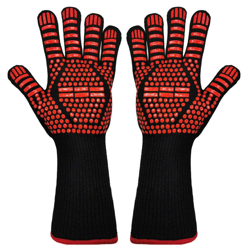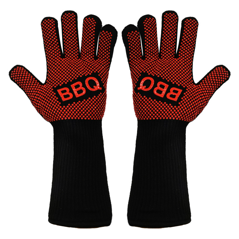 500도 바베큐 전자 레인지 실리콘 미끄럼 방지 이중층 바베큐 노동 보호 화상 방지 절연 장갑