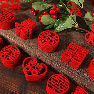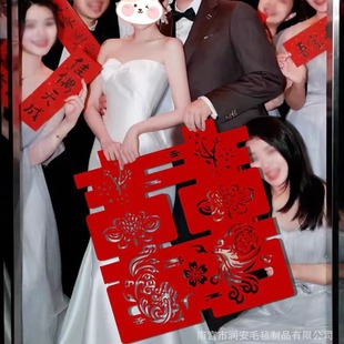 【加厚】喜字立体装饰婚房布置订婚礼结婚摆件婚庆镂空毛毡批发