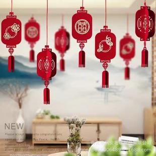 小红书同款玫红色小长条喜字毛毡无纺布婚房布置喜字贴盆栽挂件