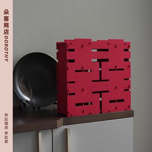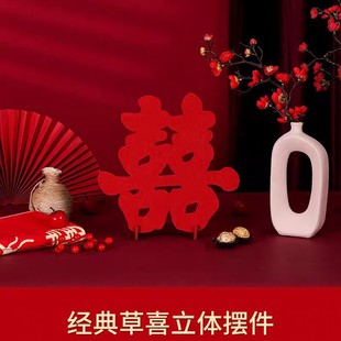 【中式古典复古红】婚礼立体喜字桌摆件婚房布置装饰客厅订婚用品