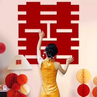 【加厚款】喜字贴结婚婚房背景墙拍照装饰囍字墙贴婚礼布置