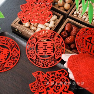 【无痕发货】新中式结婚庆喜字客厅婚房装饰布置茶杯垫喜庆套装