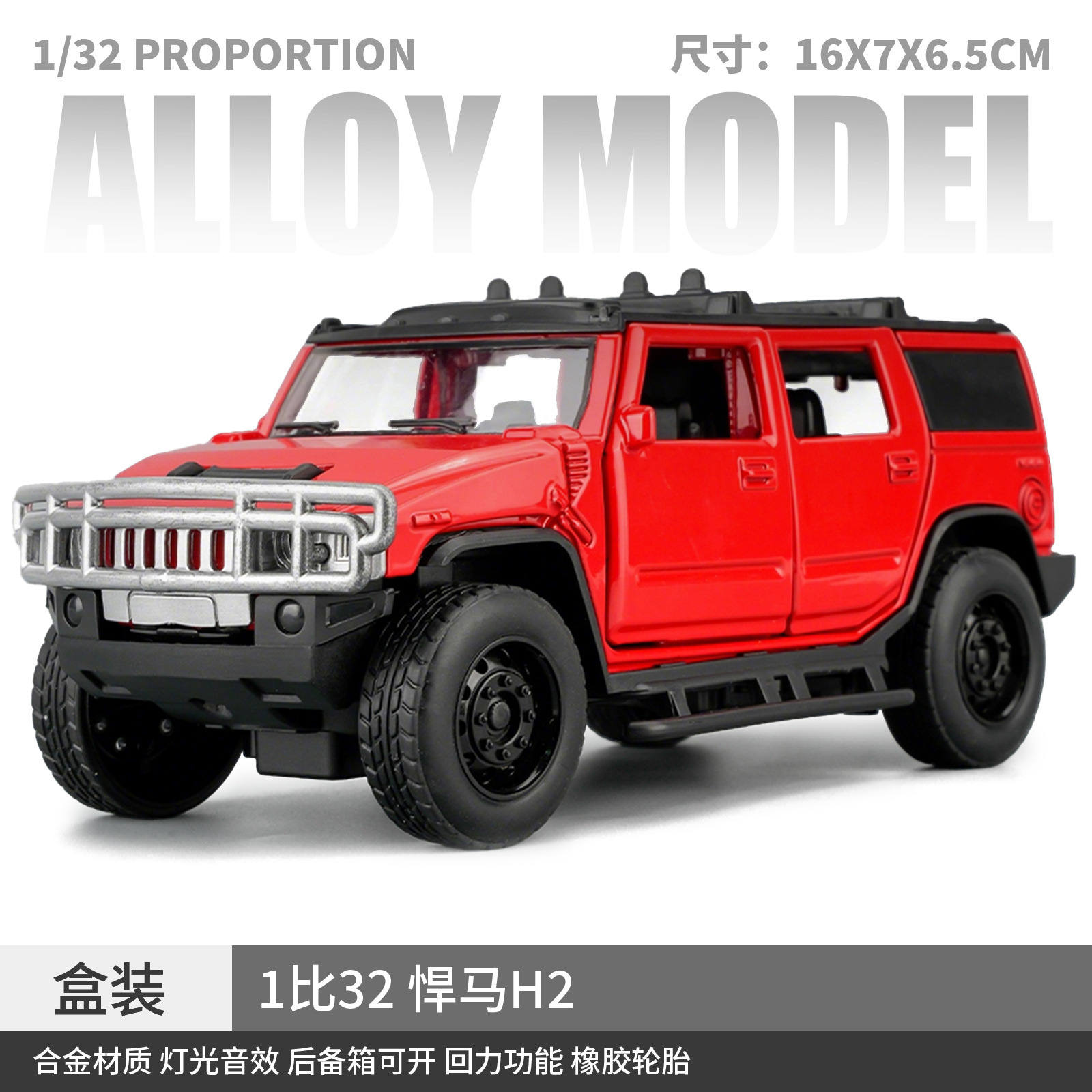 • 1:32 스케일 허머 롱바디 모형 - 박스 포함 - 레드