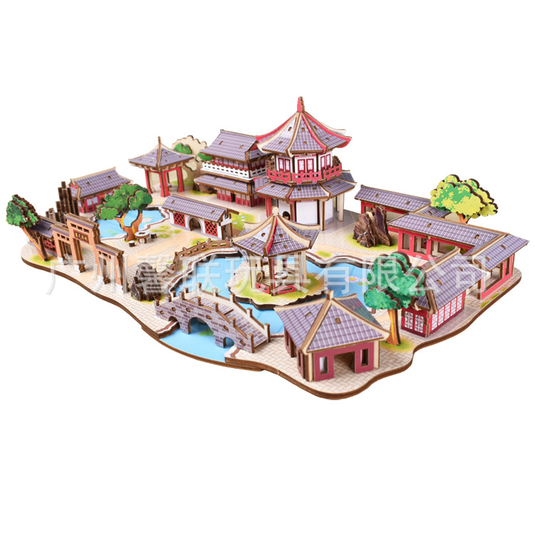 馨联厂家直销 裱纸工艺 木制益智拼图 亲子玩具 苏州园林¥27.5立即采购